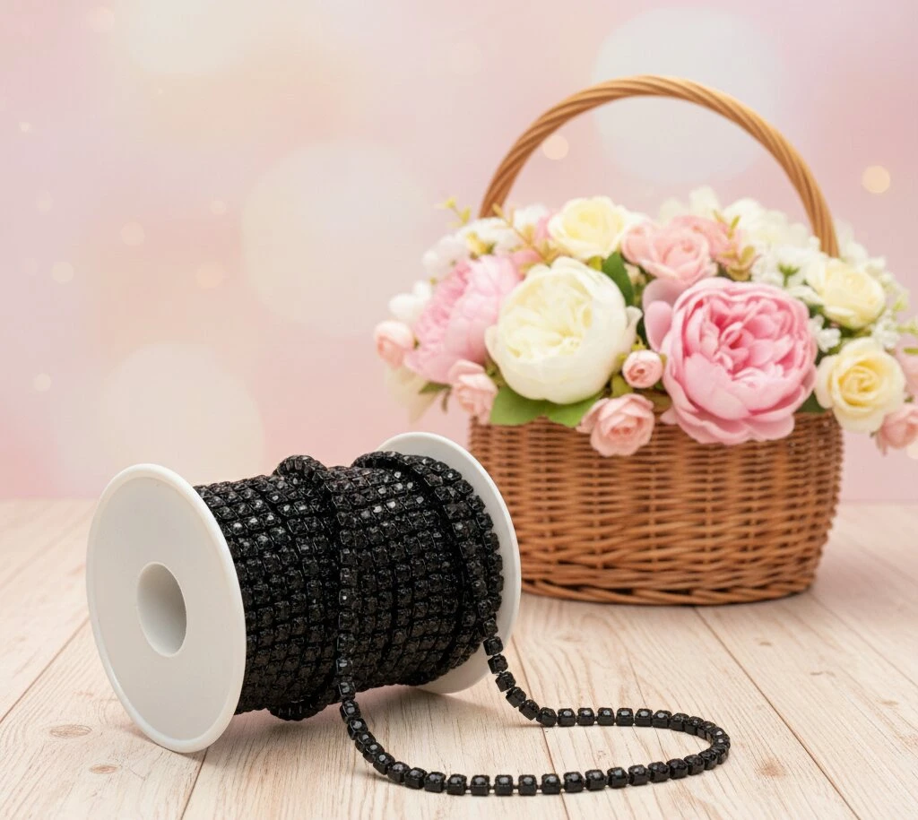 Цепи з каменями — декоративні елементи від Мереживо UA, що поєднують металеву основу та вбудовані камінці для яскравого блиску й ефектного вигляду. Вони легко прикріплюються до одягу, аксесуарів або виробів, створюючи стильний та розкішний декор.