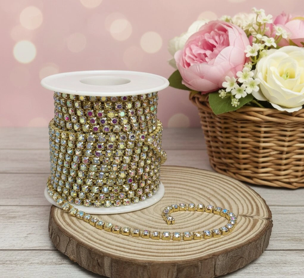 Цепи з каменями — декоративні елементи від Мереживо UA, що поєднують металеву основу та вбудовані камінці для яскравого блиску й ефектного вигляду. Вони легко прикріплюються до одягу, аксесуарів або виробів, створюючи стильний та розкішний декор.