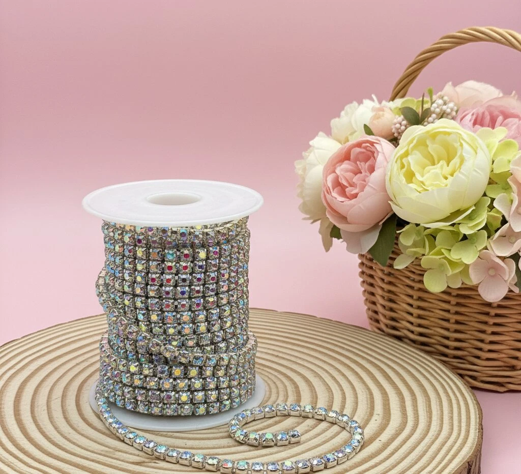 Цепи з каменями — декоративні елементи від Мереживо UA, що поєднують металеву основу та вбудовані камінці для яскравого блиску й ефектного вигляду. Вони легко прикріплюються до одягу, аксесуарів або виробів, створюючи стильний та розкішний декор.