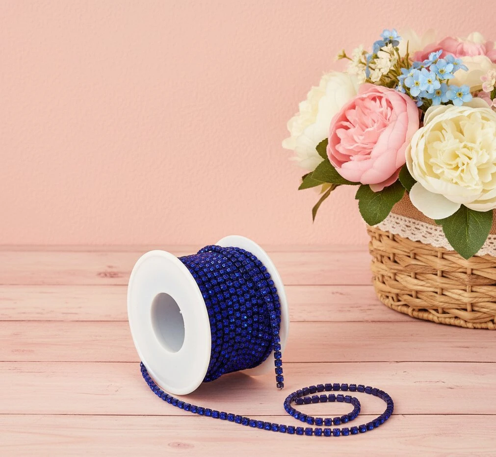Цепи з каменями — декоративні елементи від Мереживо UA, що поєднують металеву основу та вбудовані камінці для яскравого блиску й ефектного вигляду. Вони легко прикріплюються до одягу, аксесуарів або виробів, створюючи стильний та розкішний декор.