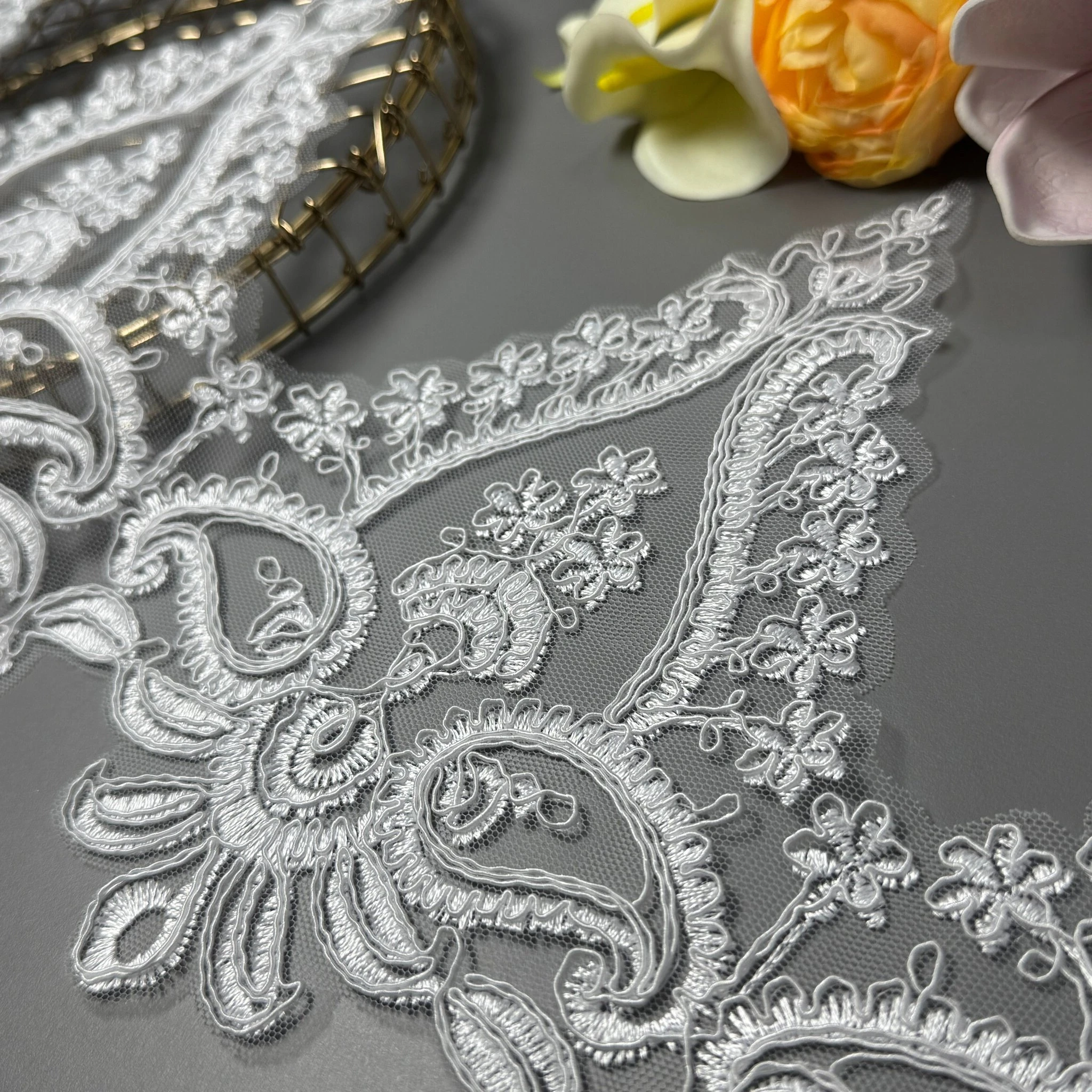 Мережево з кордовую ниткою «Оливкова гілка» 22 см (1 метр), білий