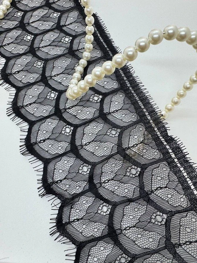Мереживо французьке «Тінь Ейфелевої вежі» 12 см. (купон 3 м.), чорний