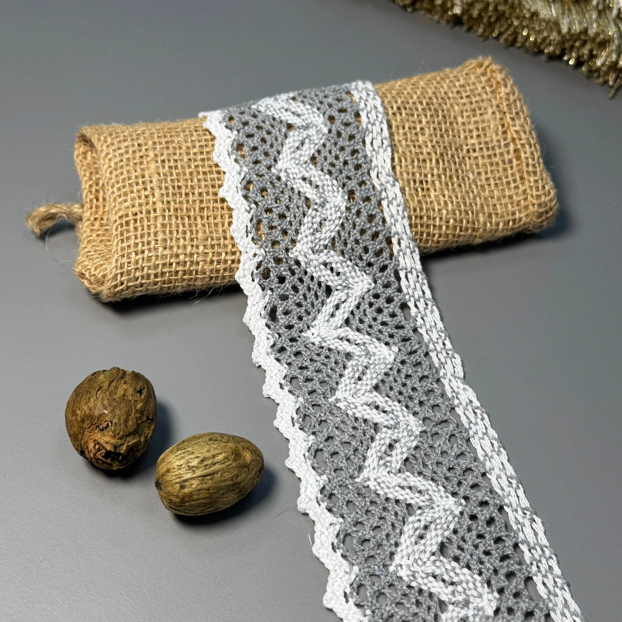 Мереживо макраме "Подих вітру" 6 см (1 м.), сірий+білий