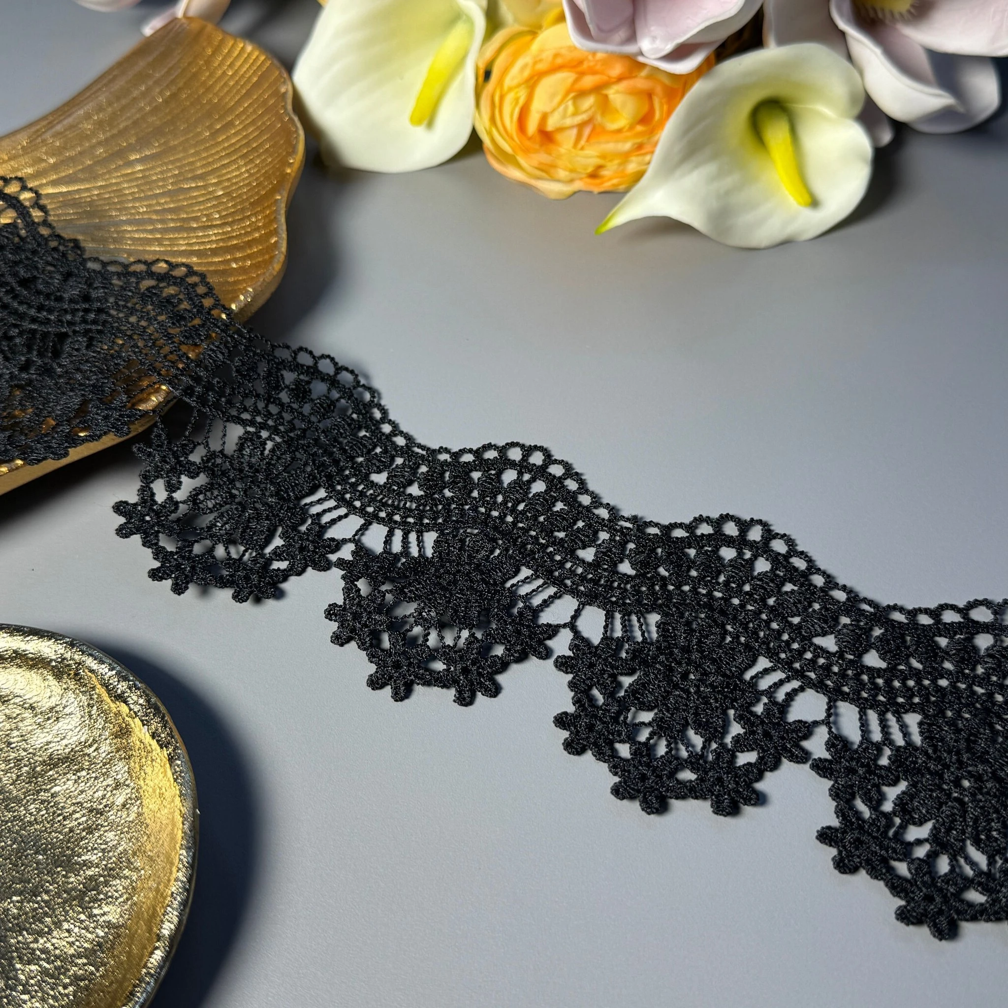 М’яке, міцне й зносостійке мереживо з поліестеру чудово підходить для оздоблення суконь, блуз, спідниць, білизни, аксесуарів та декору.