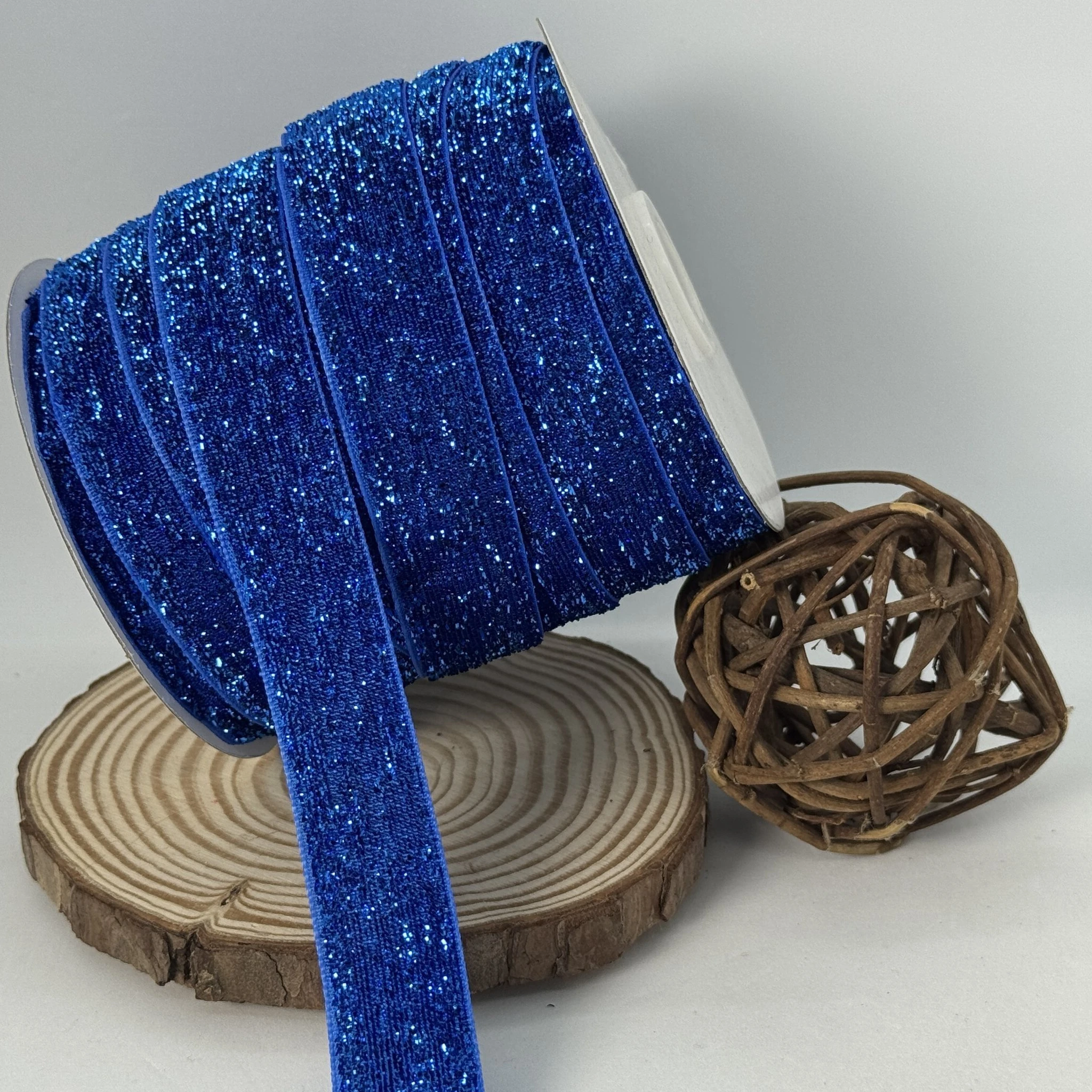 Стрічка оксамитова з парчею та люрексом — м’яка, бархатиста декоративна стрічка, прикрашена візерунком з парчі та блискучими люрексовими нитками. Виглядає святково та елегантно, додає виробам розкоші та вишуканості.