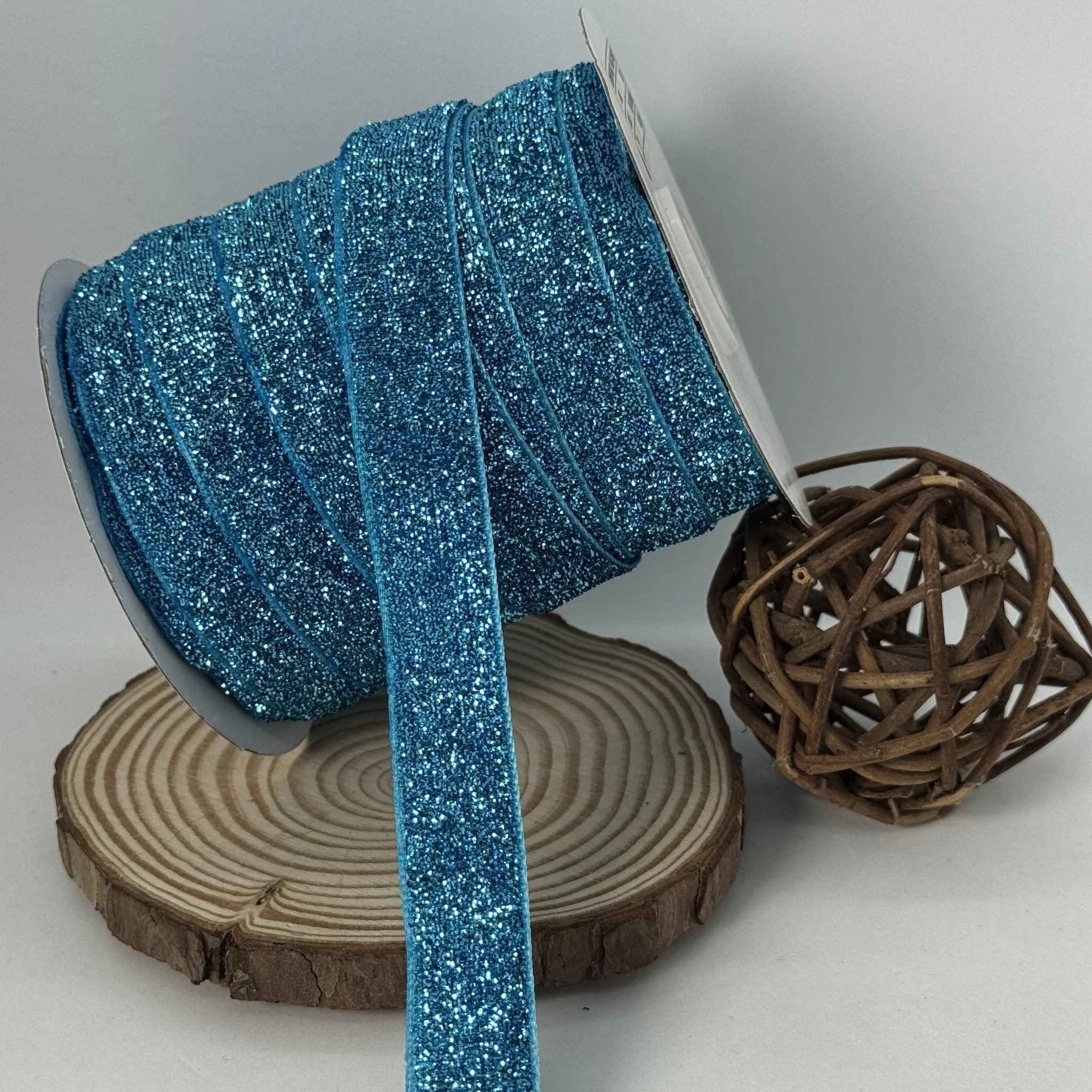 Оксамитова стрічка люрекс 2 см (25 ярдів/22,75 м.), 13 бірюза