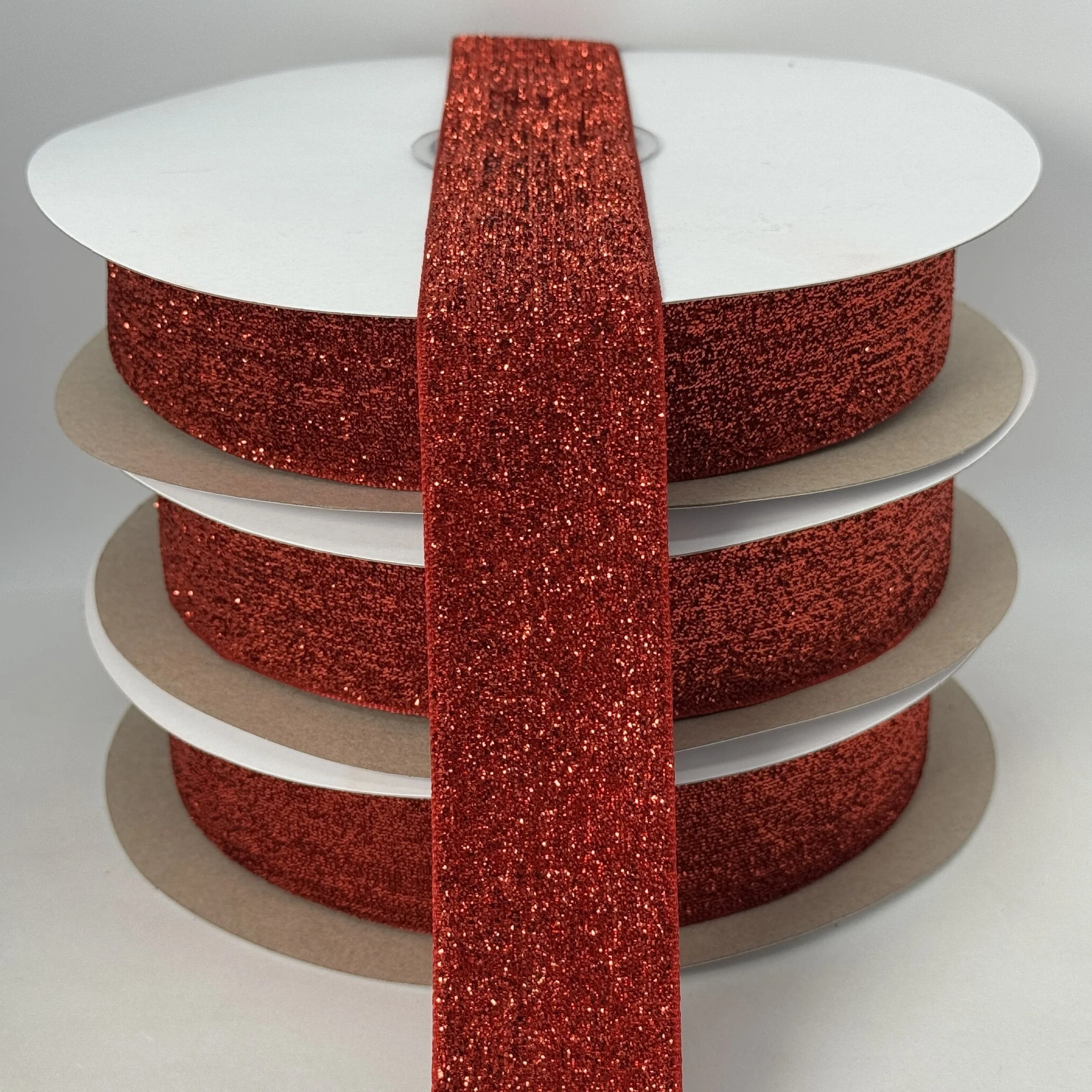 Оксамитова стрічка люрекс 3.8 см (25 ярдів/22,75 м.), 16 червоний