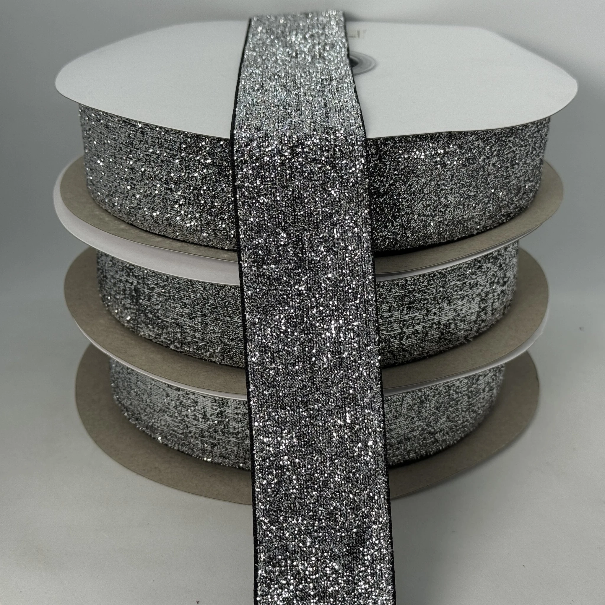 Оксамитова стрічка люрекс 3.8 см (25 ярдів/22,75 м.), 17 срібло + чорний