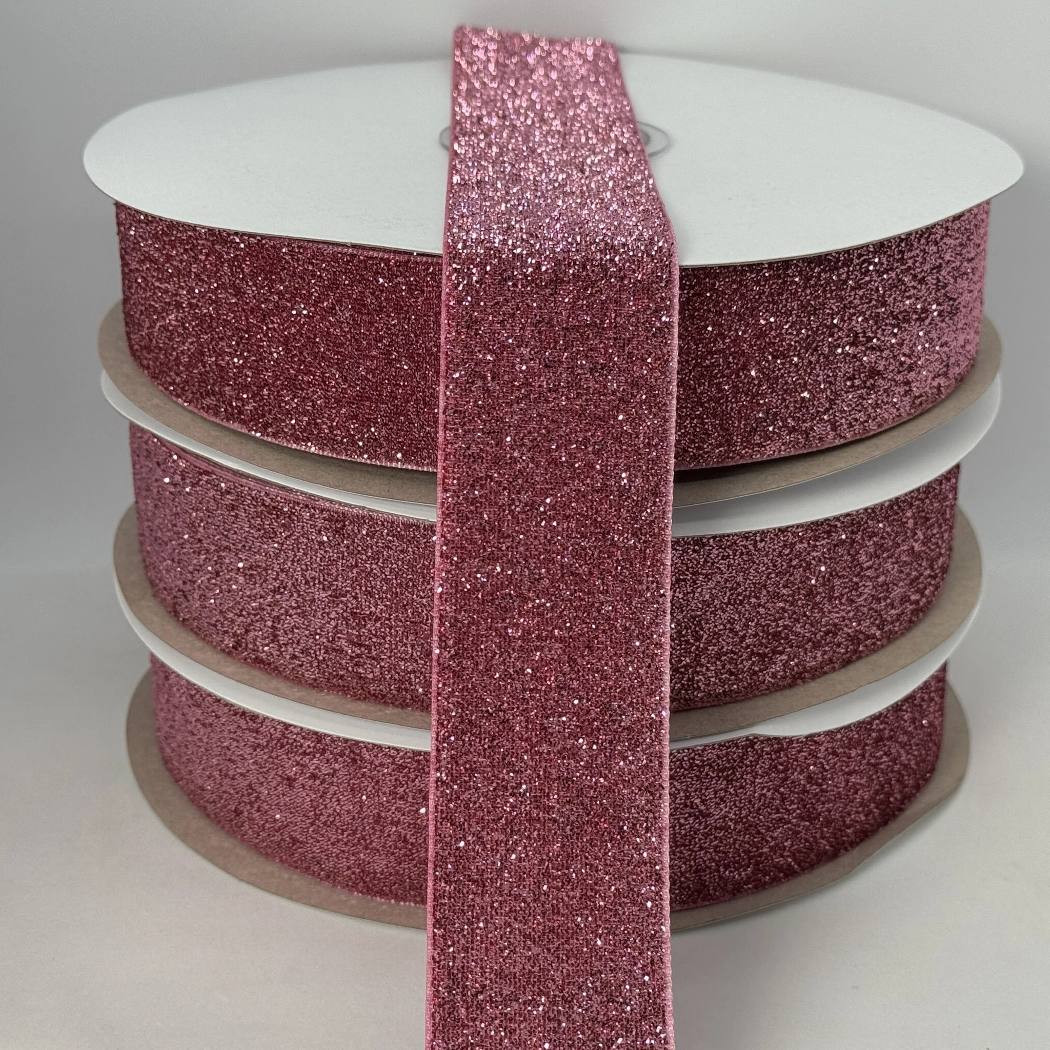 Оксамитова стрічка люрекс 3.8 см (25 ярдів/22,75 м.), 18 рожевий