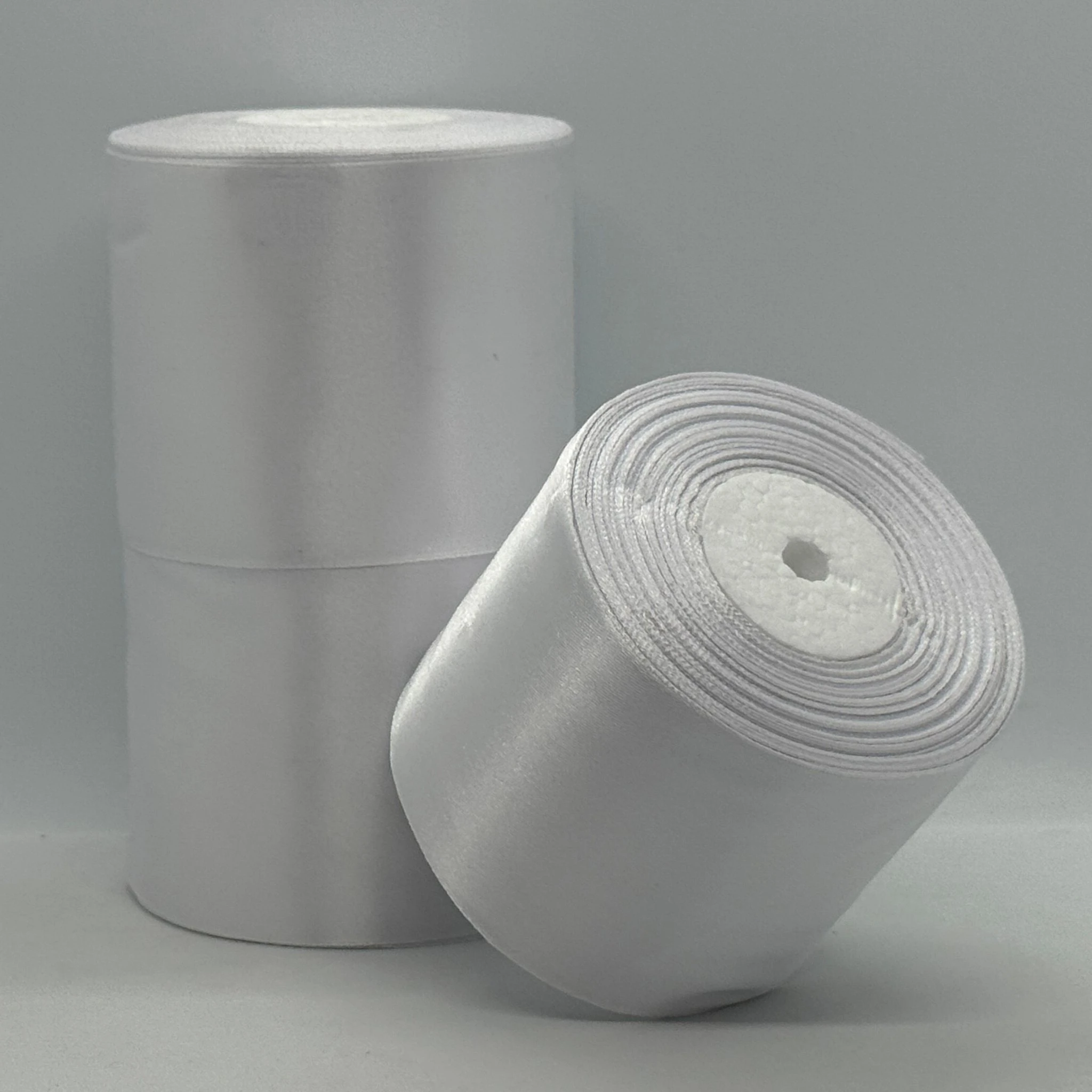 Атласна стрічка 7.5 см (33 м.), 01 білий
