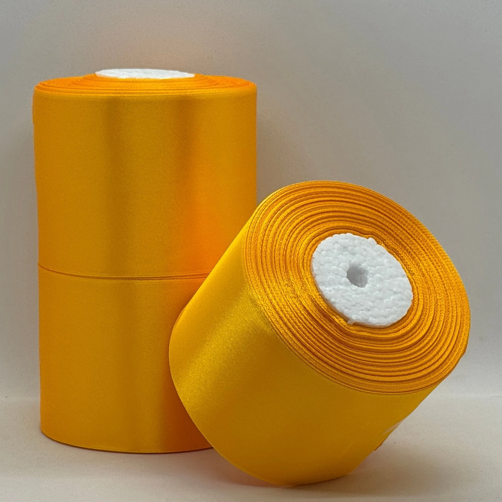 Атласна стрічка 7.5 см (33 м.), 16 темний жовтий