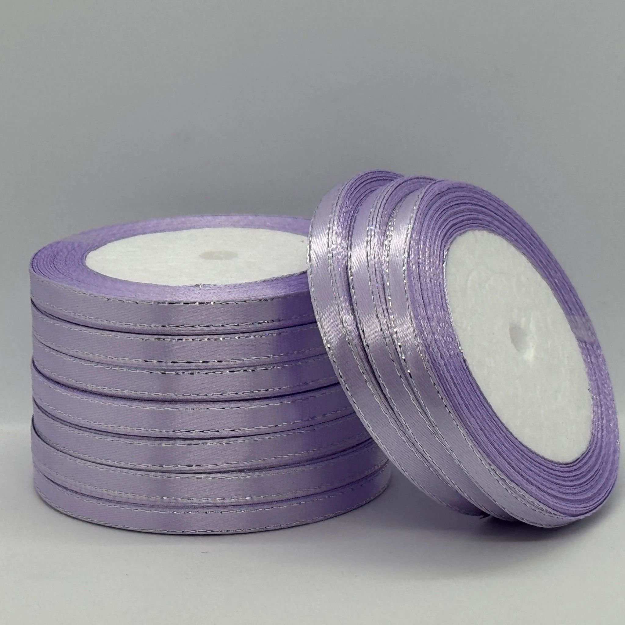 Атласна стрічка з люрекс 0,6 см+срібло (22.75 м.), 44 світло фіалковий