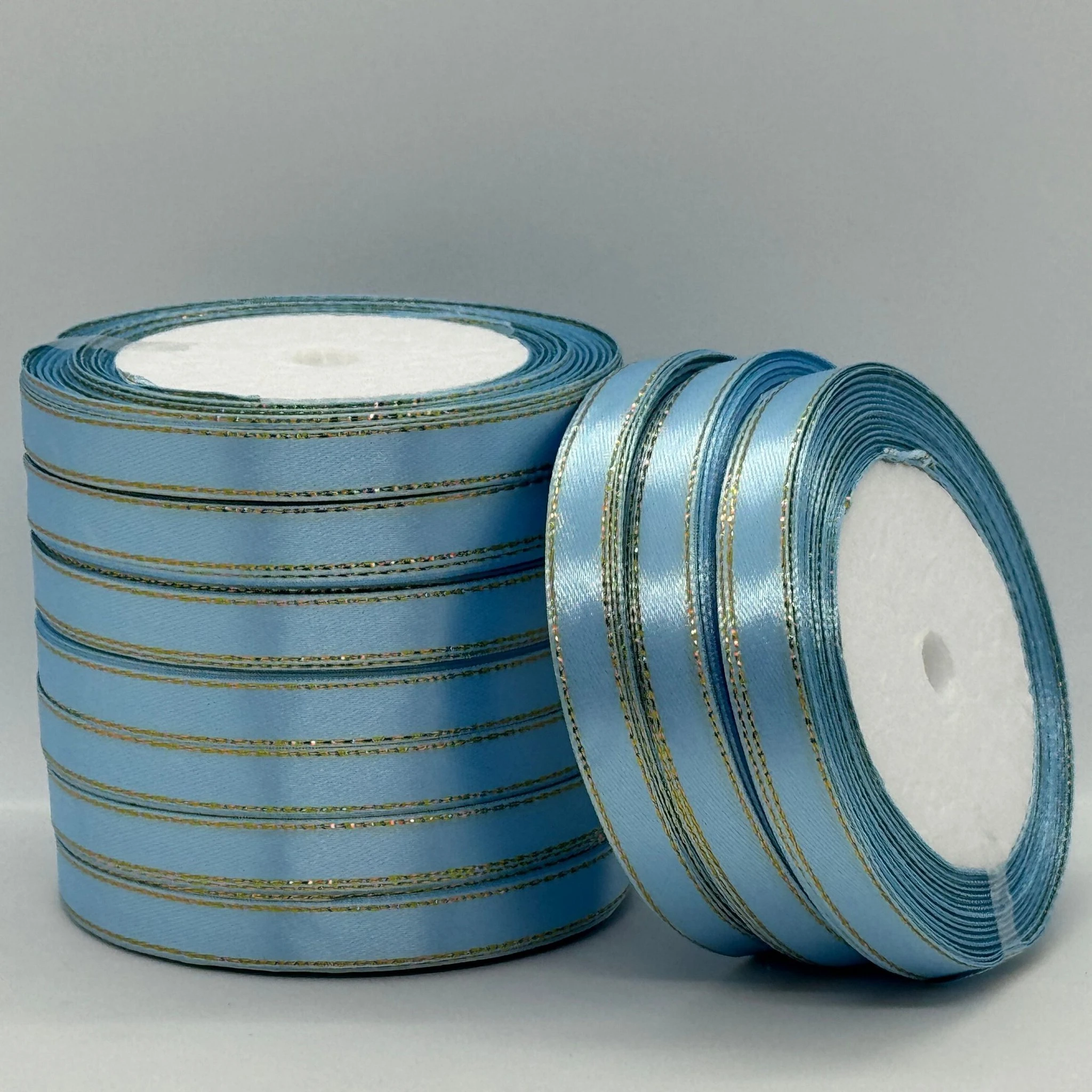 Атласна стрічка з люрекс 1 см+золото (22.75 м), 187 блакитний