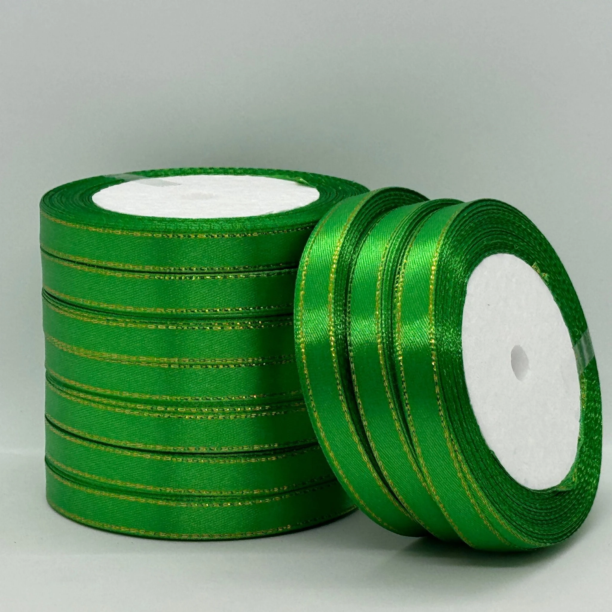 Атласна стрічка з люрекс 1 см+золото (22.75 м), 19 зелений