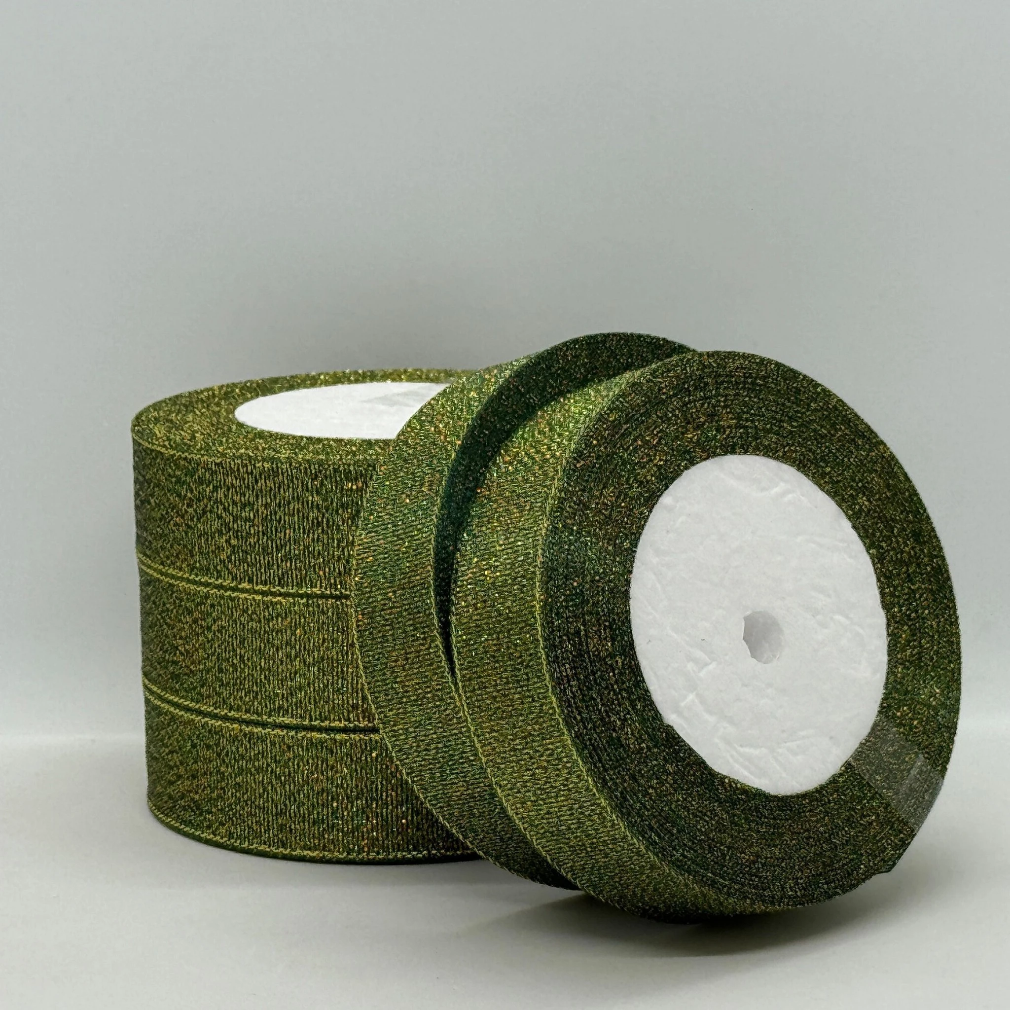 Тасьма парчева 2,5 см (25 ярдів/22,75 м.), 77 темний зелений + золото