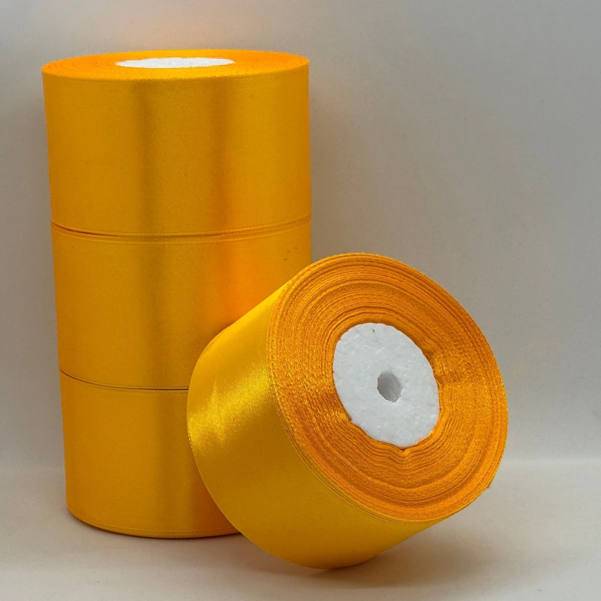 Атласная лента 5 см (33 м.), 16 темний жовтий