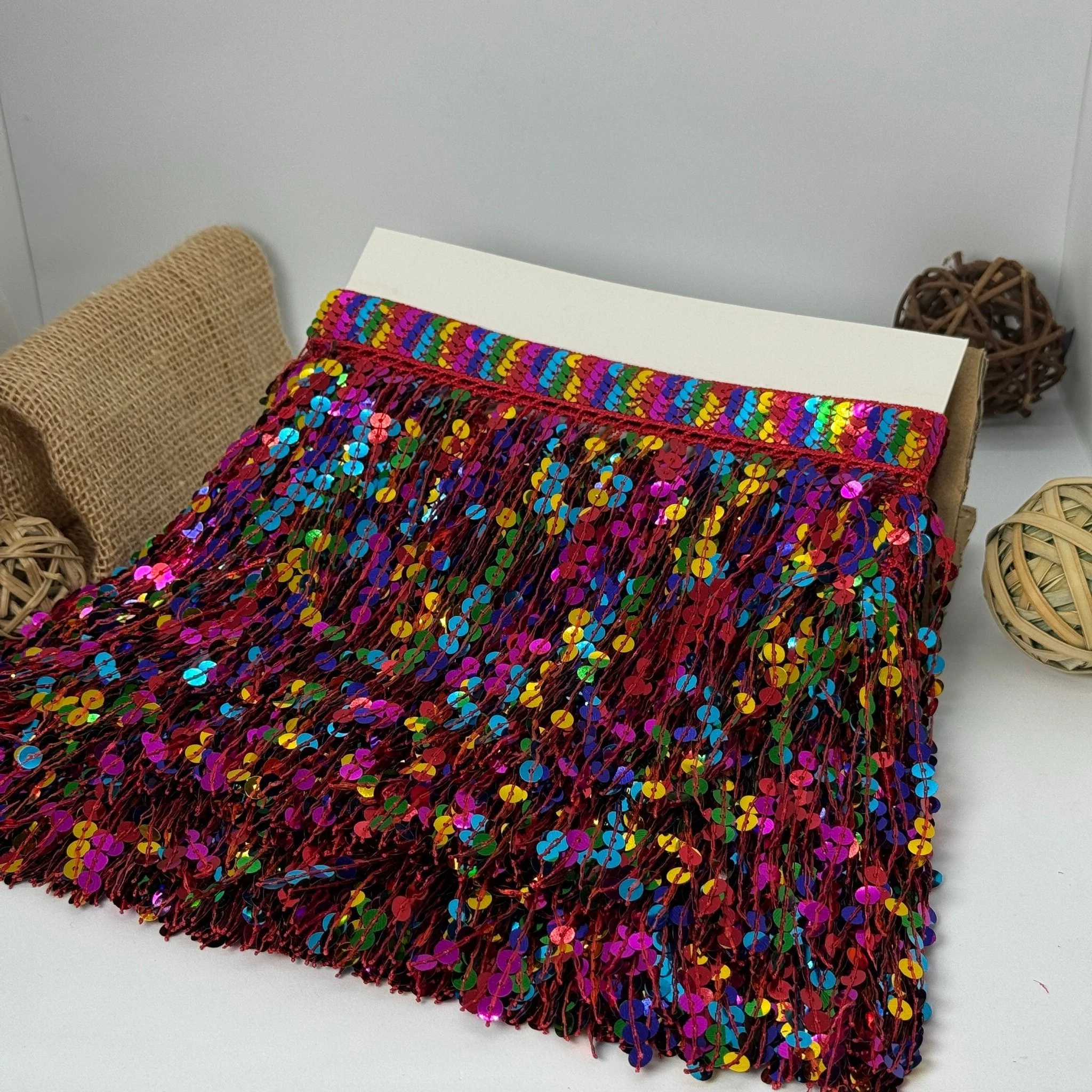Бахрома танцевальная с пайетками «Сердце танца» 16 см (9.1 метр), 11 кольоровий червоний