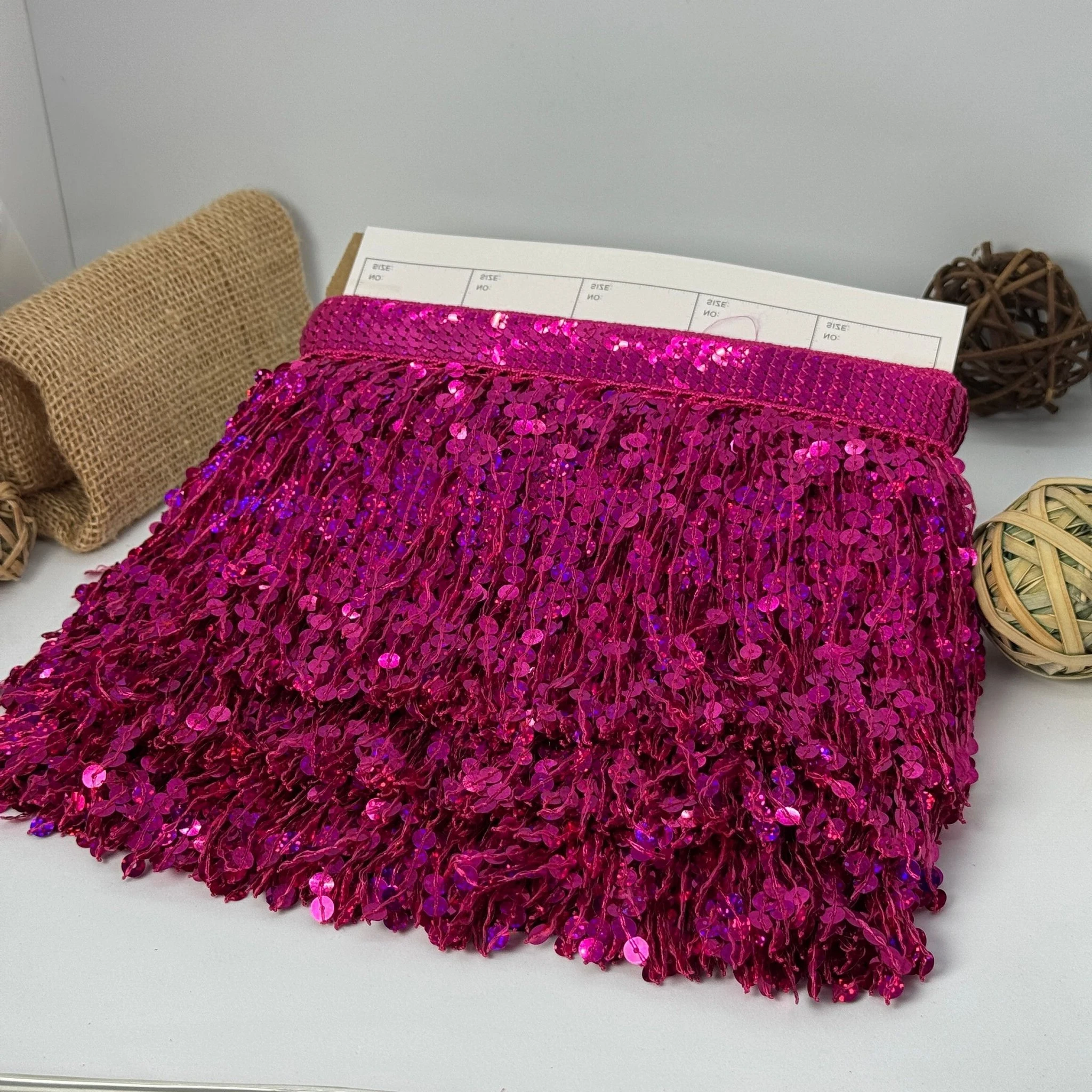 Бахрома танцевальная с пайетками — декоративная тесьма с длинными нитями, украшенными блестящими пайетками. Легкая, эластичная и динамичная, она красиво движется во время танца, создавая эффект мерцания.
