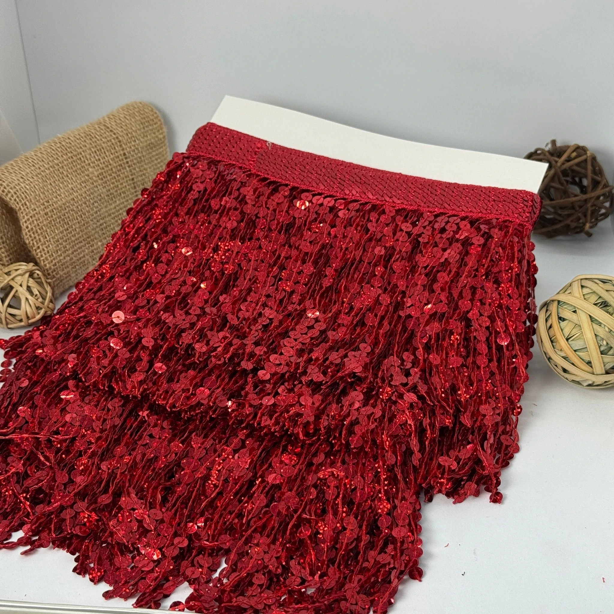 Бахрома танцевальная с пайетками «Сердце танца» 16 см (9.1 метр), 4 червоний