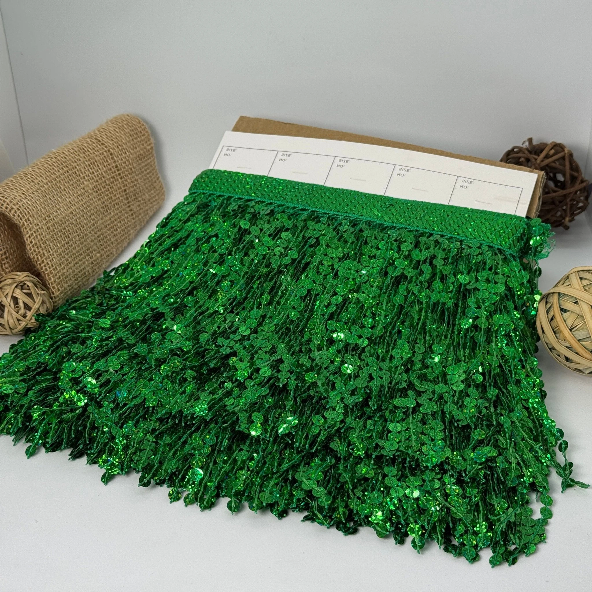 Бахрома танцевальная с пайетками «Сердце танца» 16 см (9.1 метр), 5 зелений