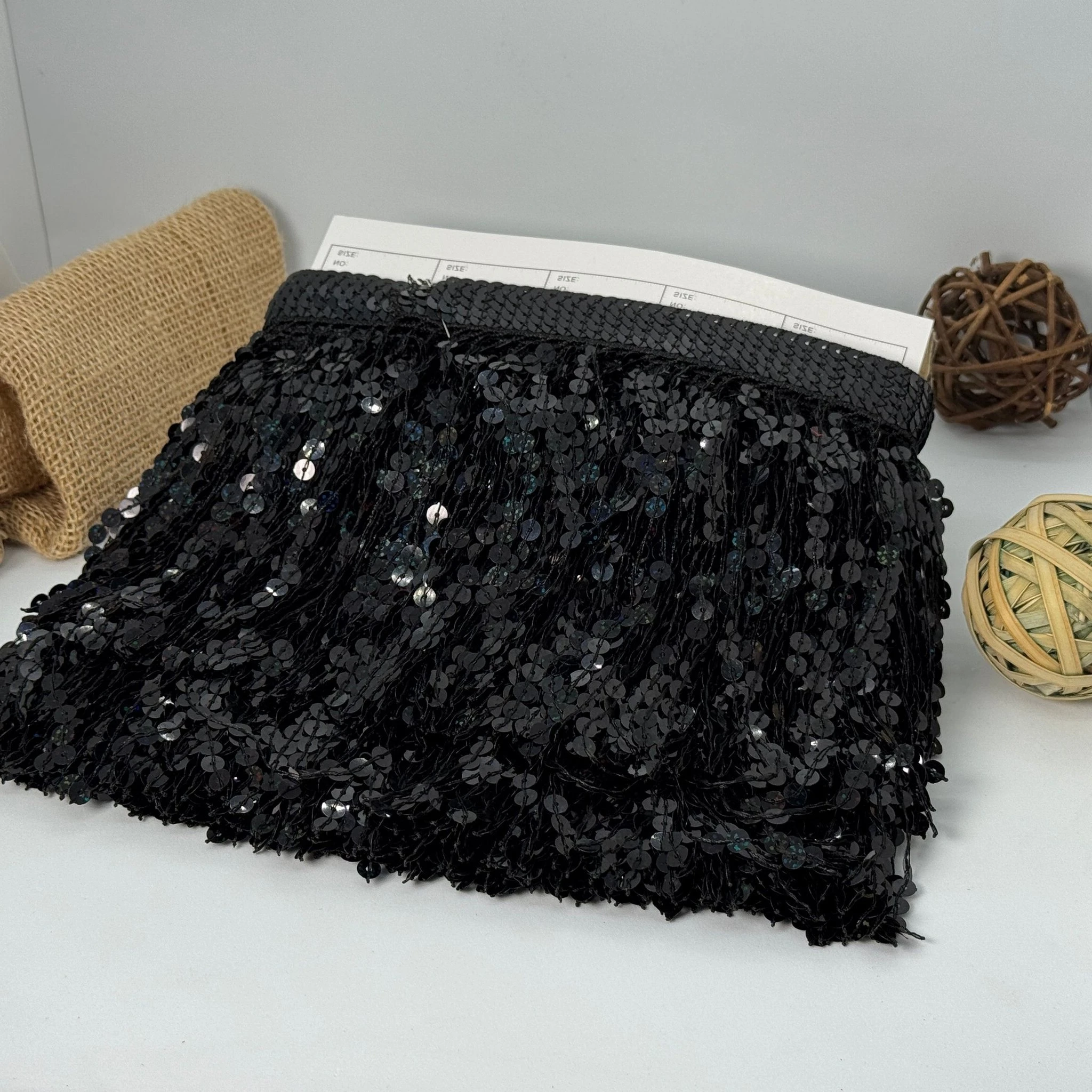 Бахрома танцевальная с пайетками — декоративная тесьма с длинными нитями, украшенными блестящими пайетками. Легкая, эластичная и динамичная, она красиво движется во время танца, создавая эффект мерцания.