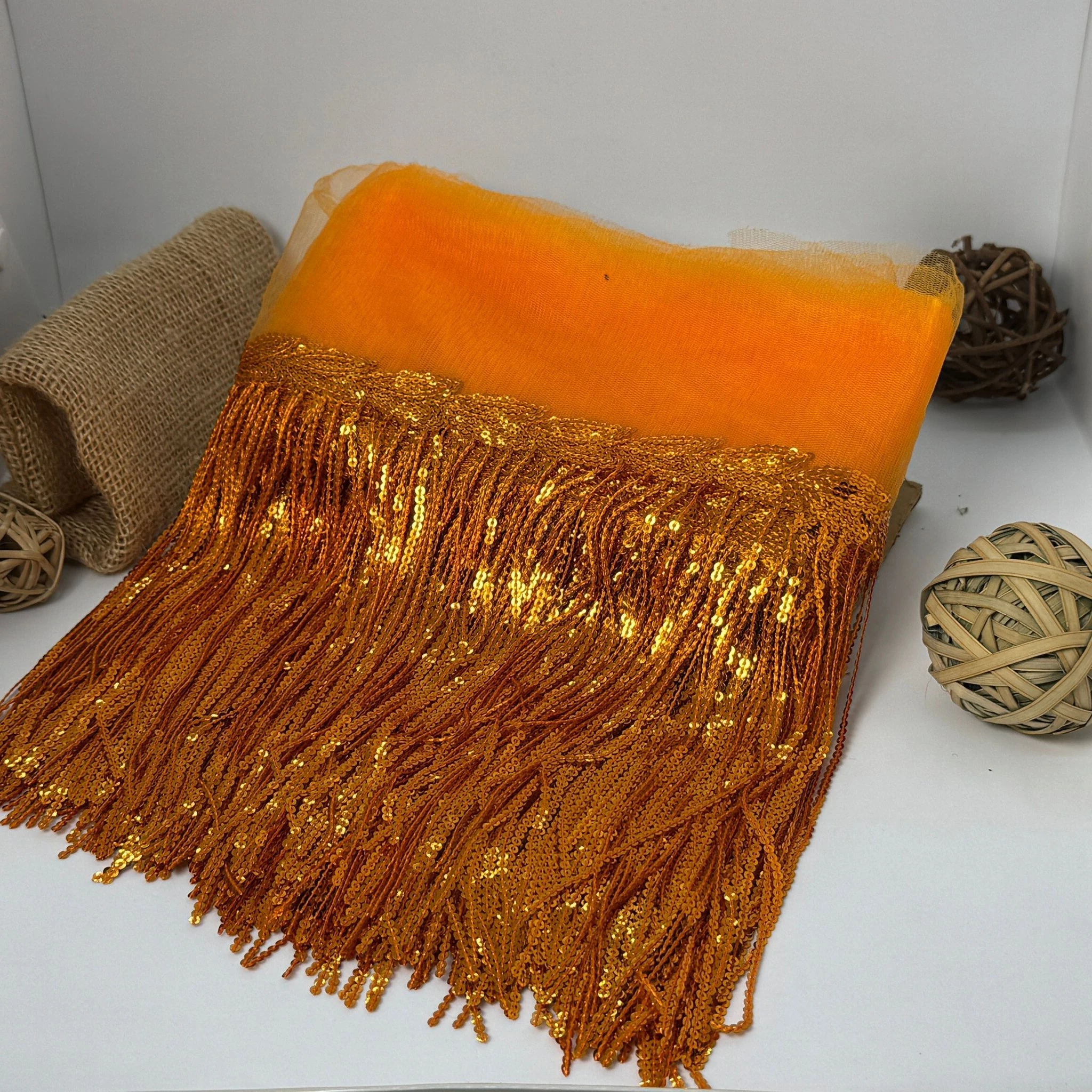 Бахрома танцевальная с пайетками на сетке «Искры страсти» 20 см (9.1 метр), 13 помаранчевий