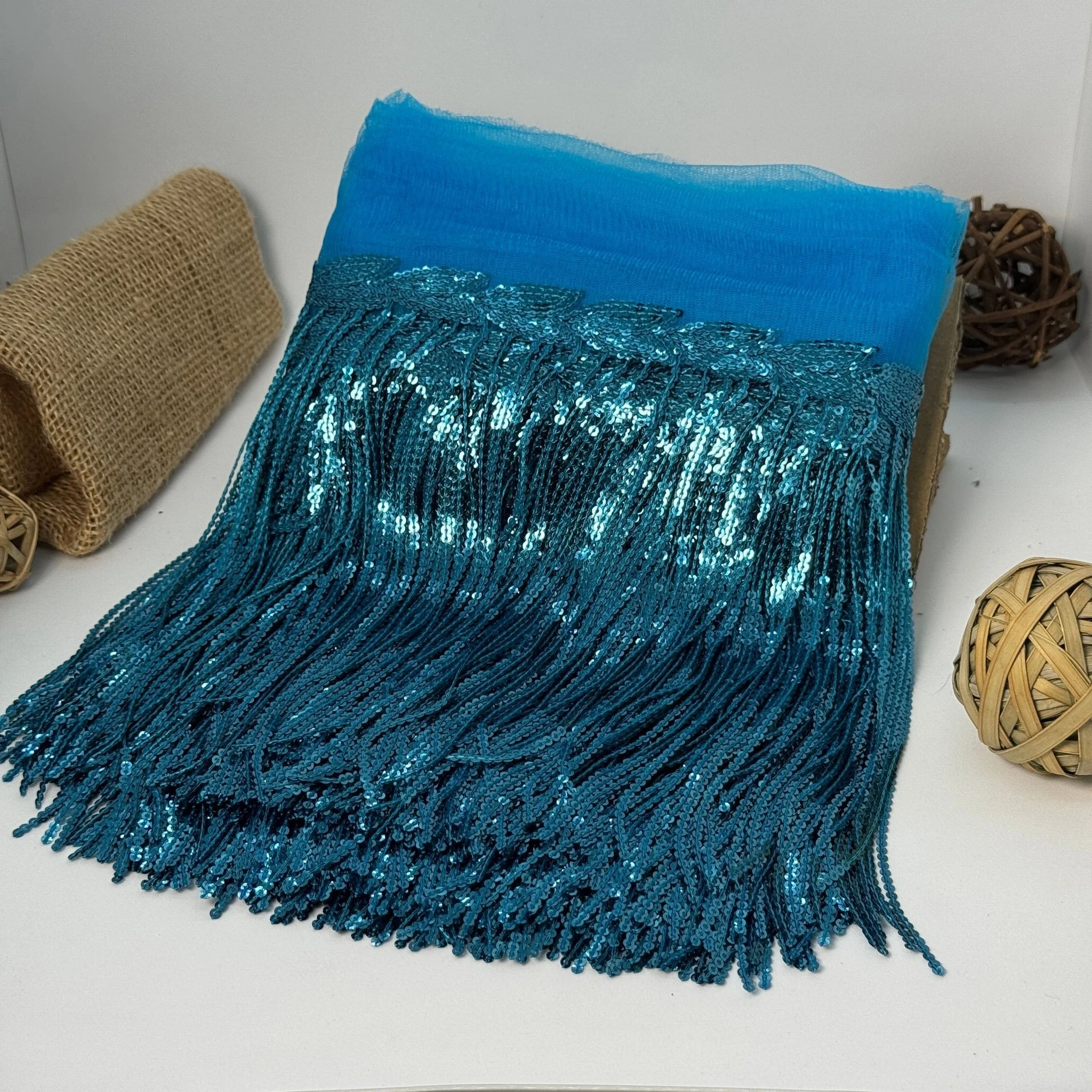 Бахрома танцевальная с пайетками на сетке «Искры страсти» 20 см (9.1 метр), 14 світлий блакитний
