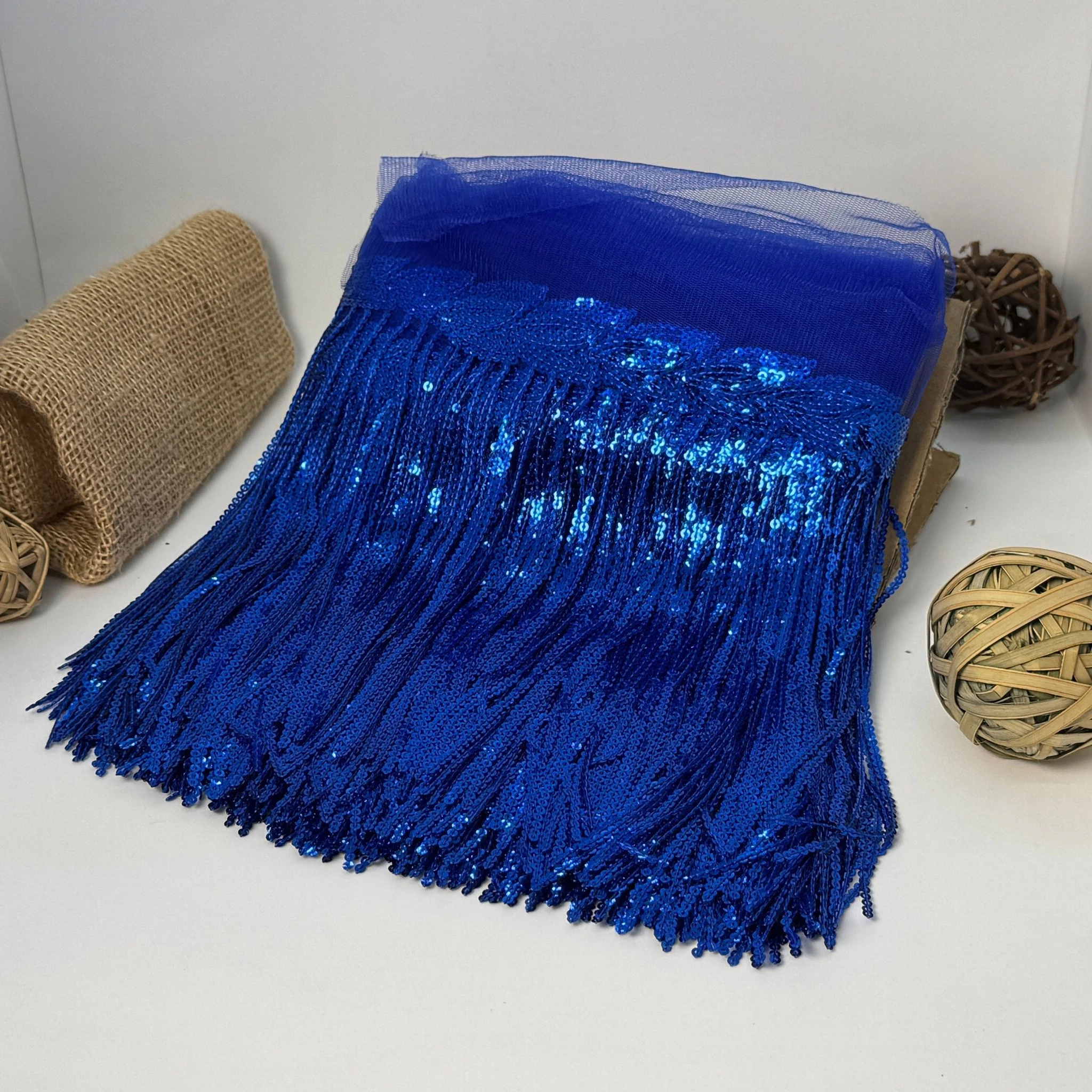 Бахрома танцевальная с пайетками на сетке «Искры страсти» 20 см (9.1 метр), 15 синій