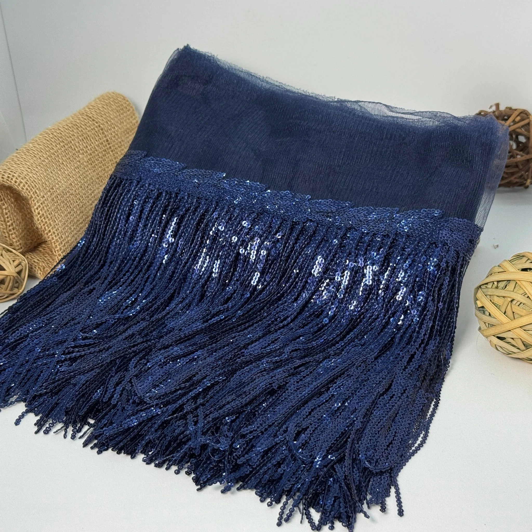 Бахрома танцевальная с пайетками на сетке «Искры страсти» 20 см (9.1 метр), 16 темний синій