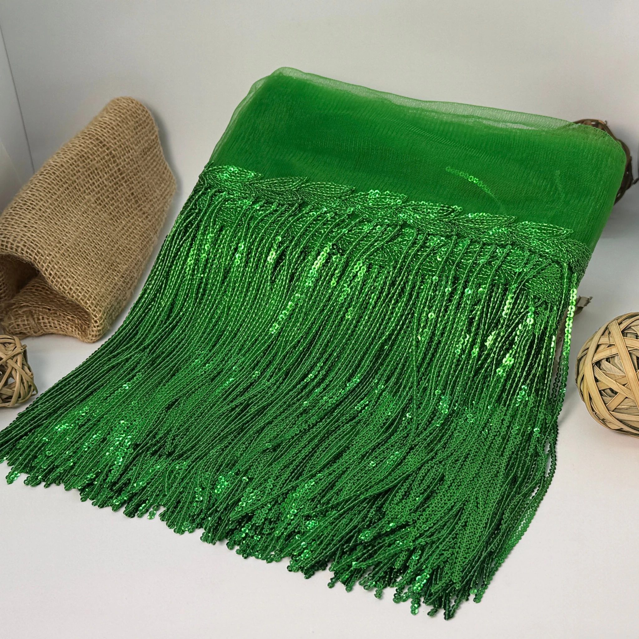 Бахрома танцевальная с пайетками на сетке «Искры страсти» 20 см (9.1 метр), 18 зелений