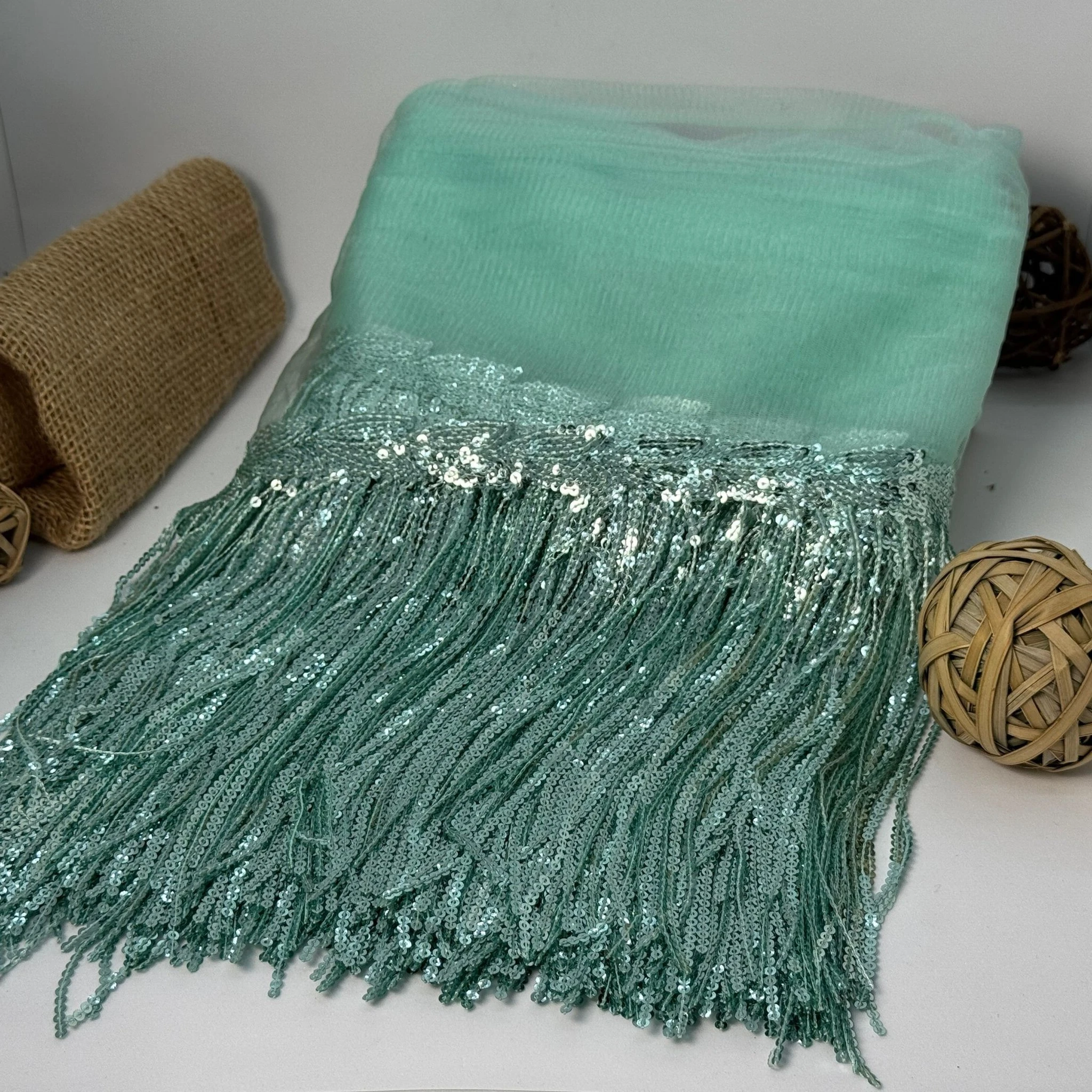 Бахрома танцевальная с пайетками на сетке «Искры страсти» 20 см (9.1 метр), 19 морхвиля