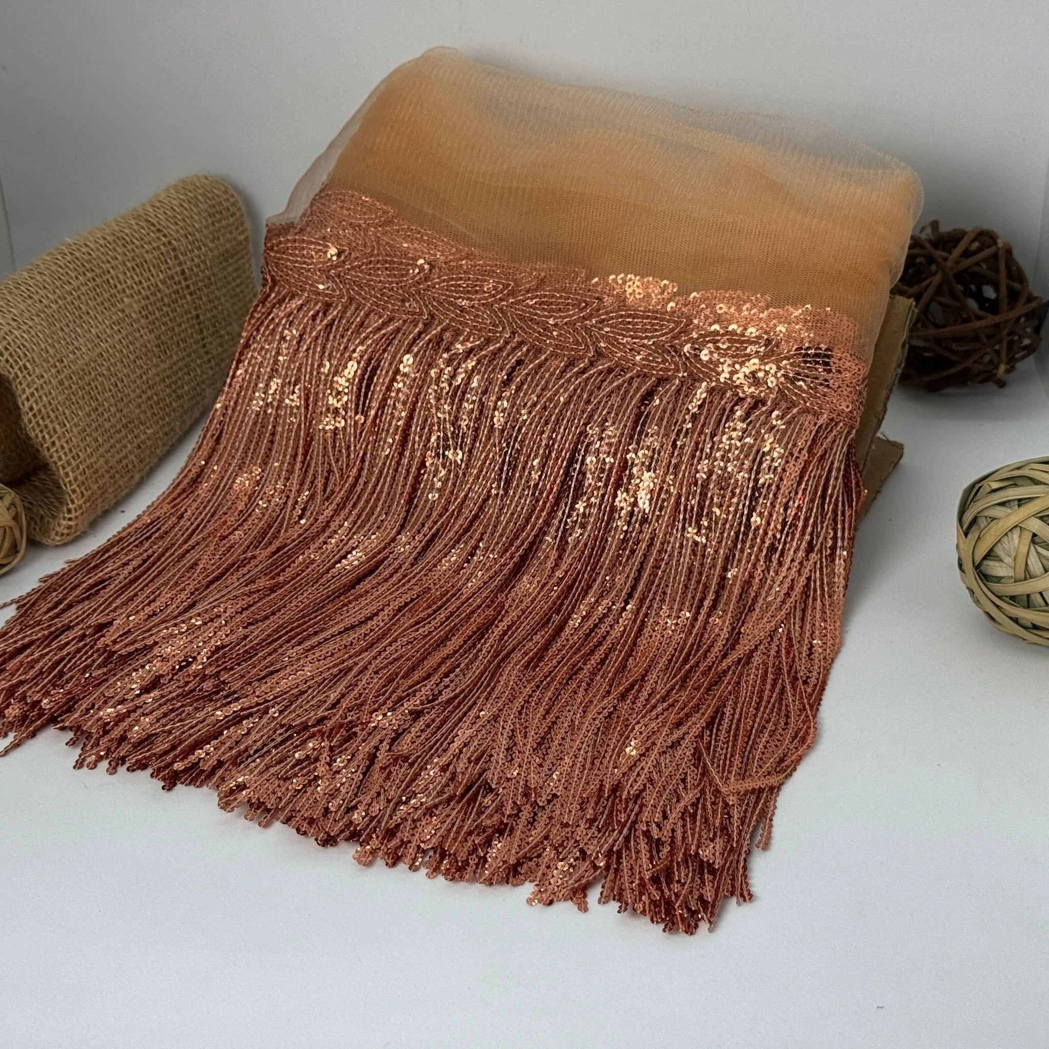 Бахрома танцевальная с пайетками на сетке «Искры страсти» 20 см (9.1 метр), 30 рожеве золото