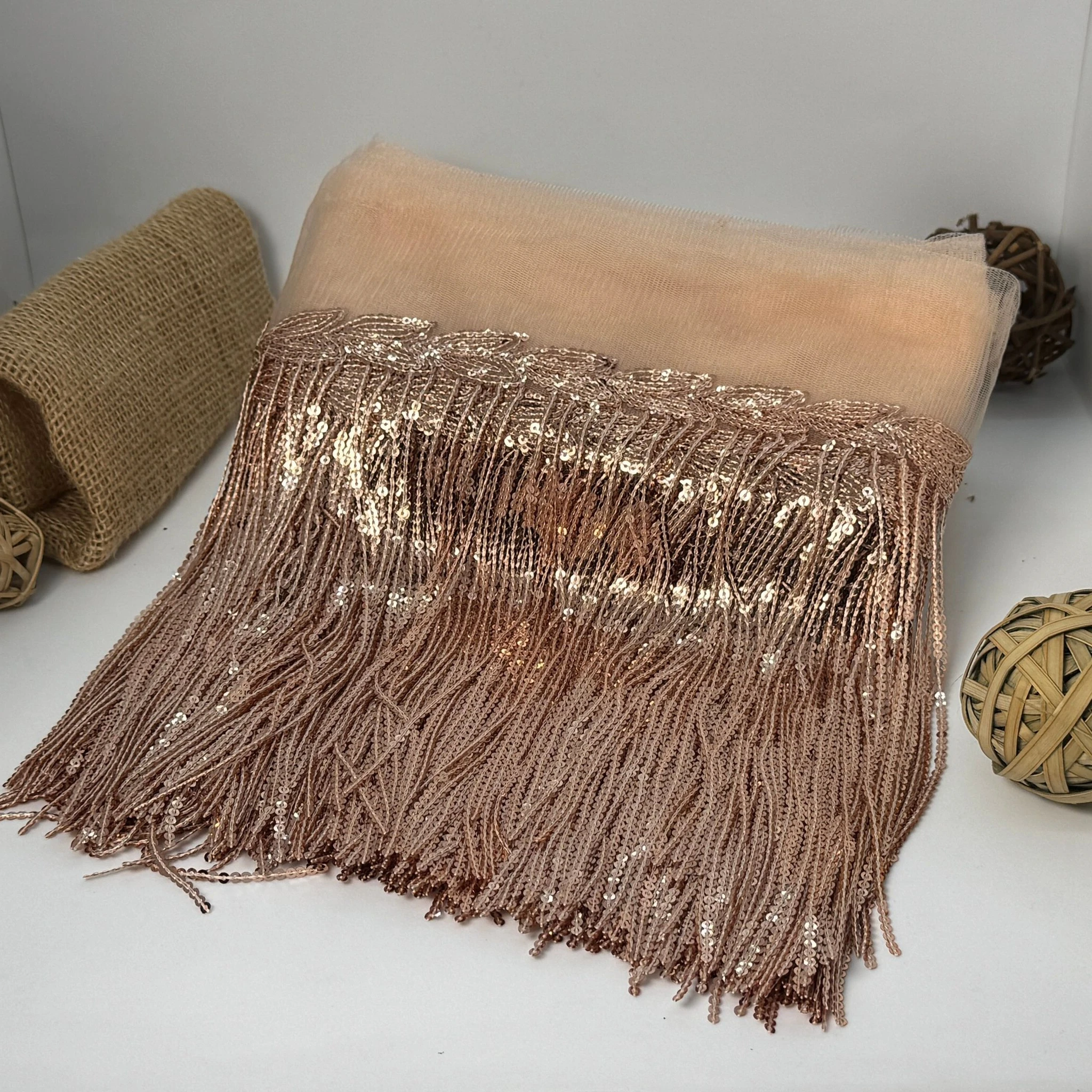 Бахрома танцевальная с пайетками на сетке «Искры страсти» 20 см (9.1 метр), 4 світлий бежевий