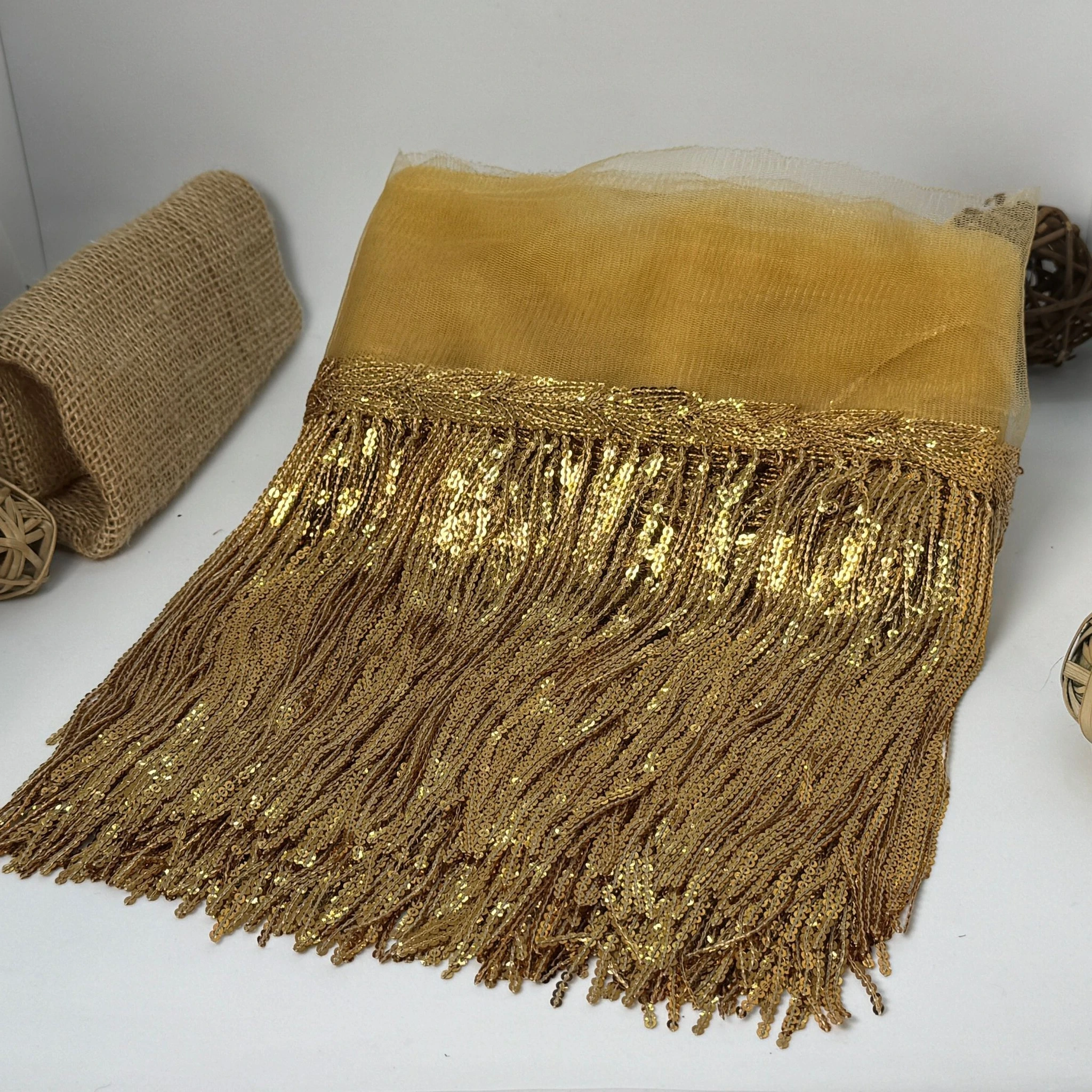 Бахрома танцевальная с пайетками — декоративная тесьма с длинными нитями, украшенными блестящими пайетками. Легкая, эластичная и динамичная, она красиво движется во время танца, создавая эффект мерцания.