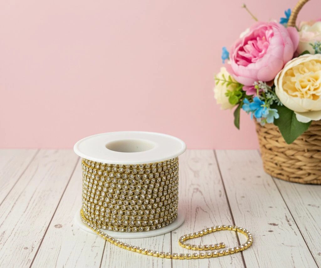 Цепи с камнями — декоративные элементы от Мережива UA, которые сочетают металлическую основу и встроенные камни для яркого блеска и эффектного вида. Они легко крепятся к одежде, аксессуарам или изделиям, создавая стильный и роскошный декор.