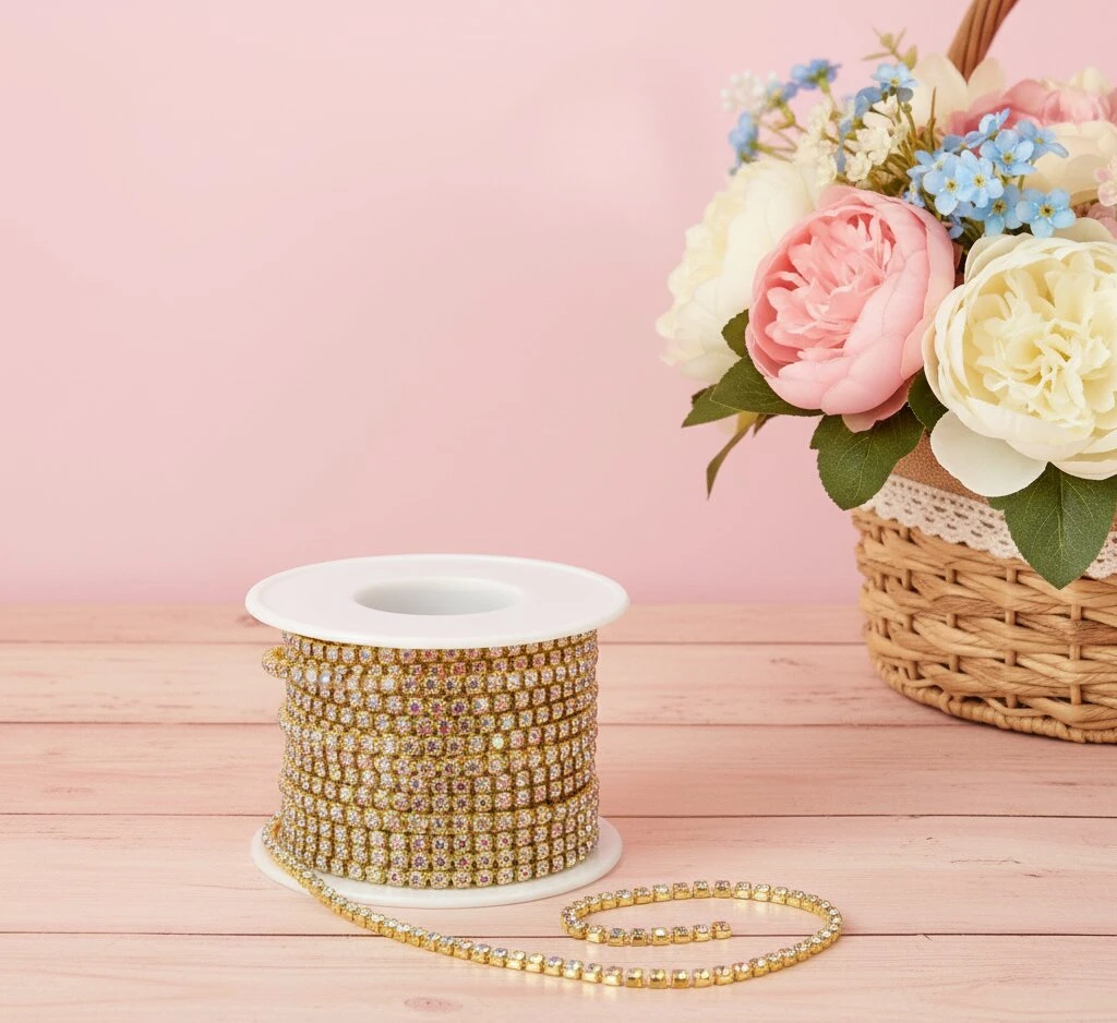 Цепи с камнями — декоративные элементы от Мережива UA, которые сочетают металлическую основу и встроенные камни для яркого блеска и эффектного вида. Они легко крепятся к одежде, аксессуарам или изделиям, создавая стильный и роскошный декор.
