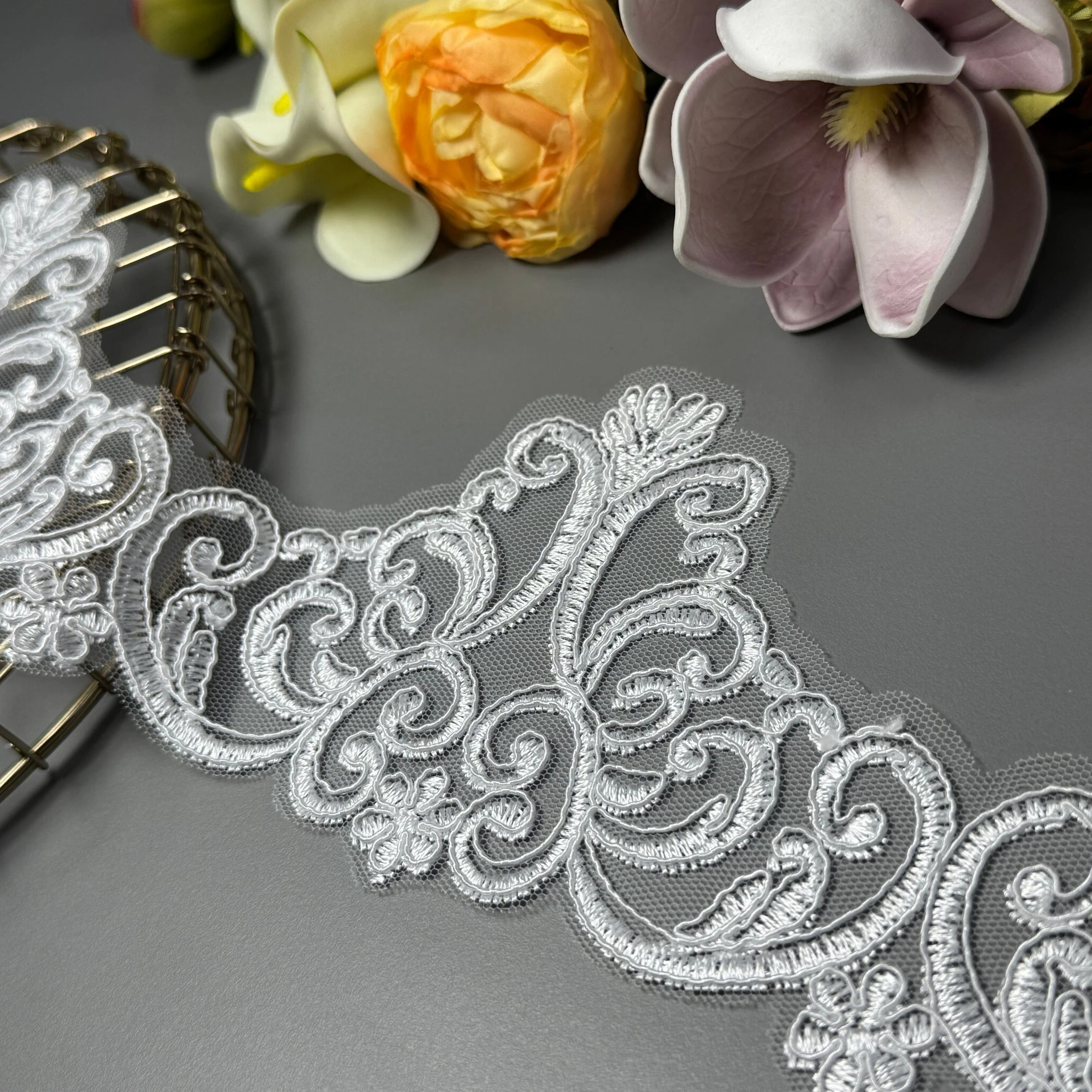 Кружево с кордовой нитью«Фуксия рассвета» 10 см (1 метр), білий