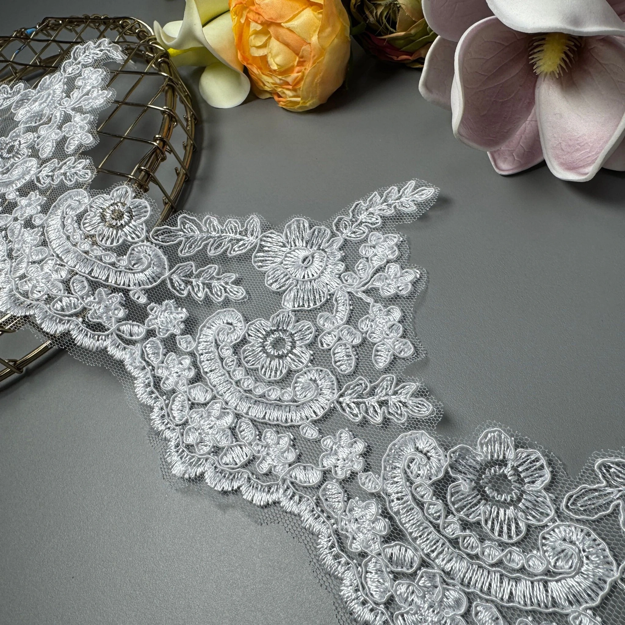 Кружево с кордовой нитью «Молочный жасмин» 12 см (1 метр), білий