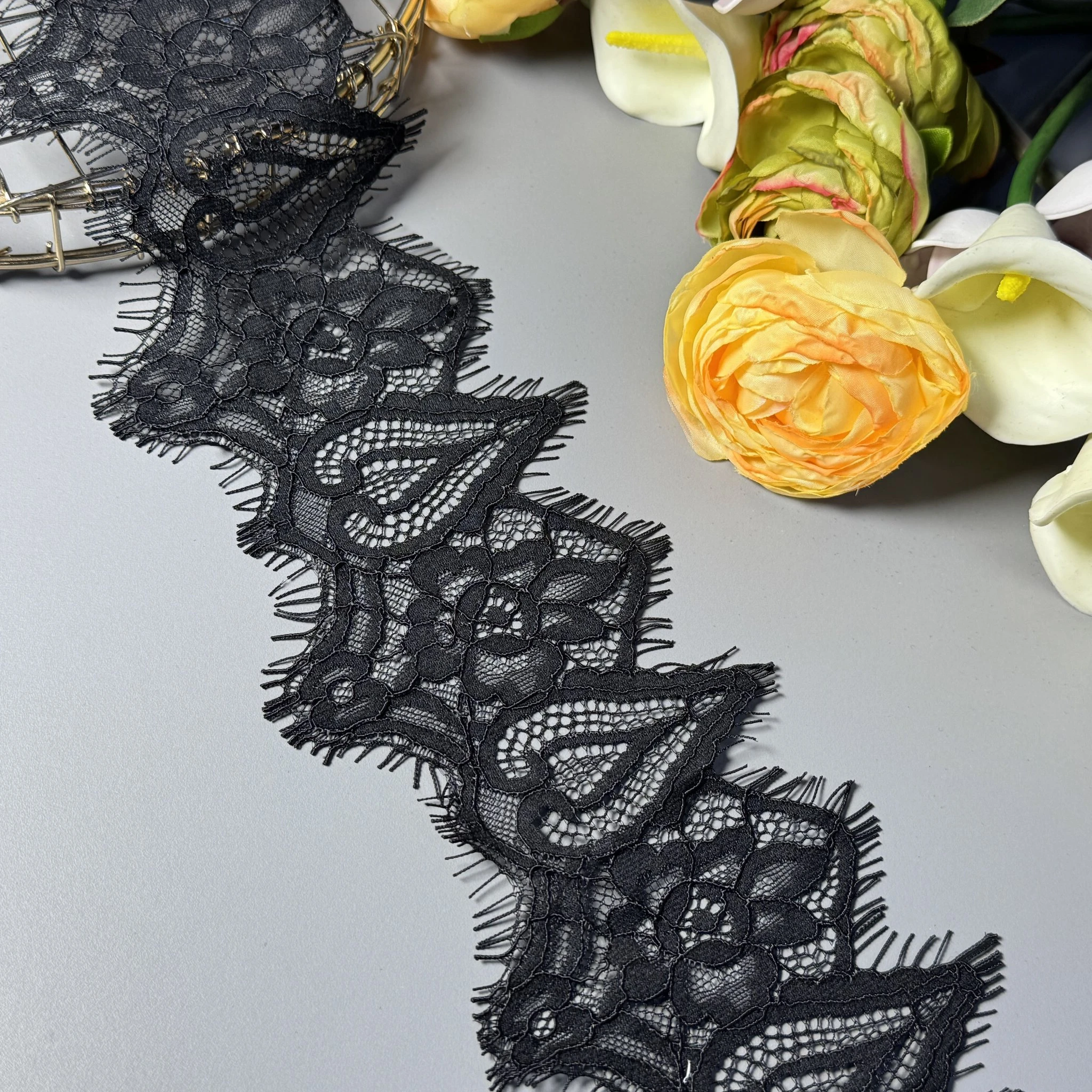 Кружевной материал французский «Шепот кружева» 11 см. (купон 3 м.), чорний