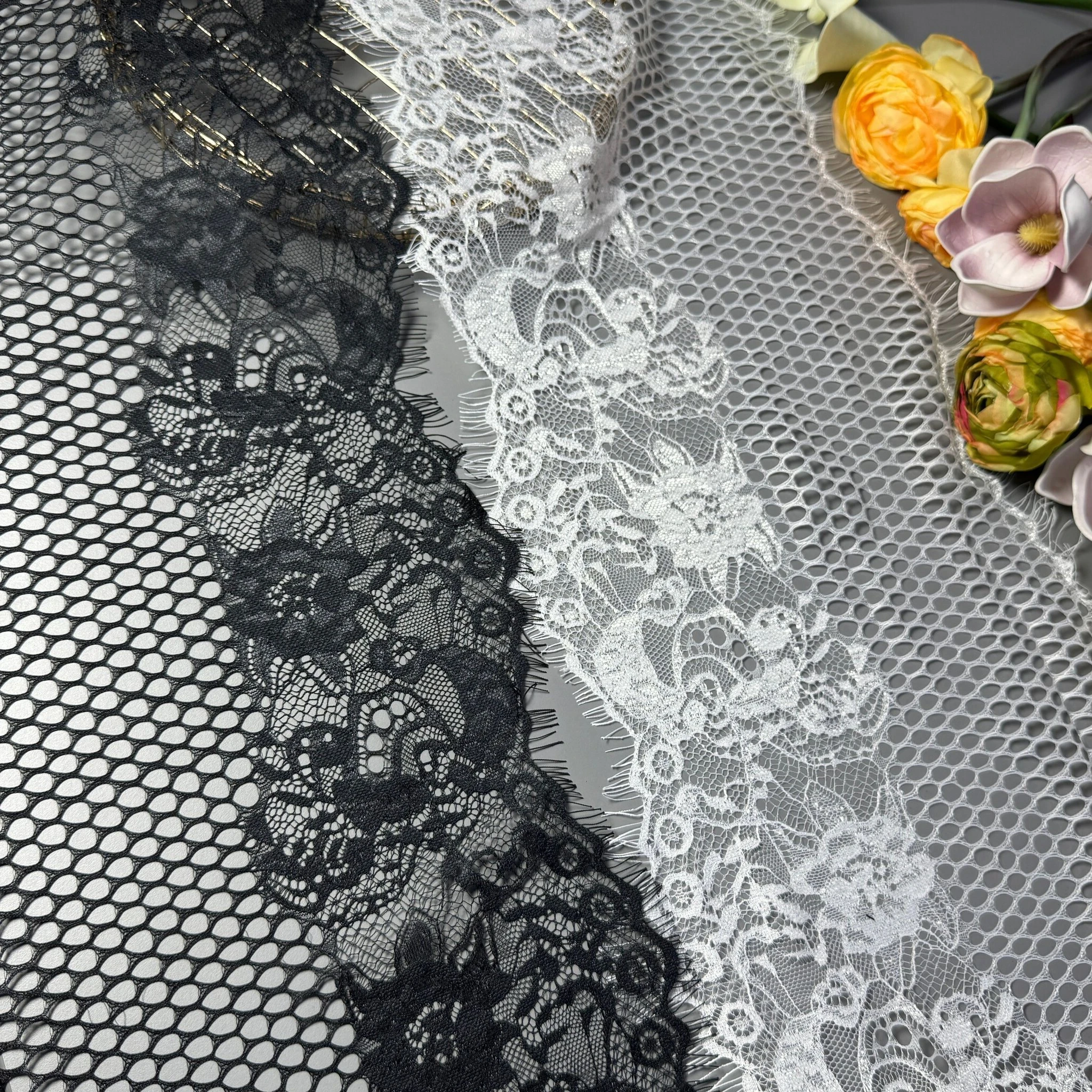 Нежное плетение, изящный узор и легкость ткани делают это кружево идеальным для свадебных платьев, вечерних нарядов, белья и элитного декора.