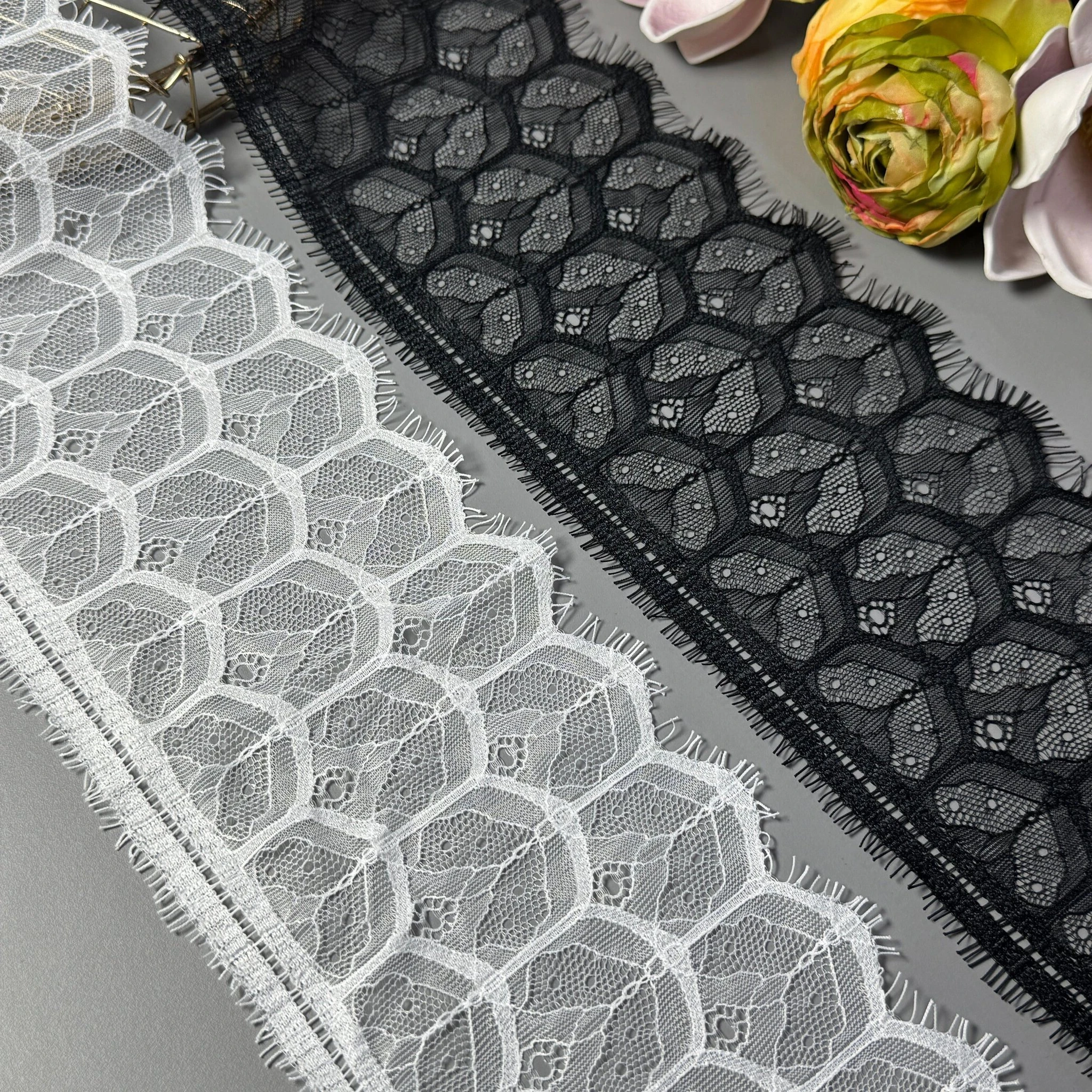 Нежное плетение, изысканный узор и легкость ткани делают это кружево идеальным для свадебных платьев, вечерних нарядов, белья и элитного декора.