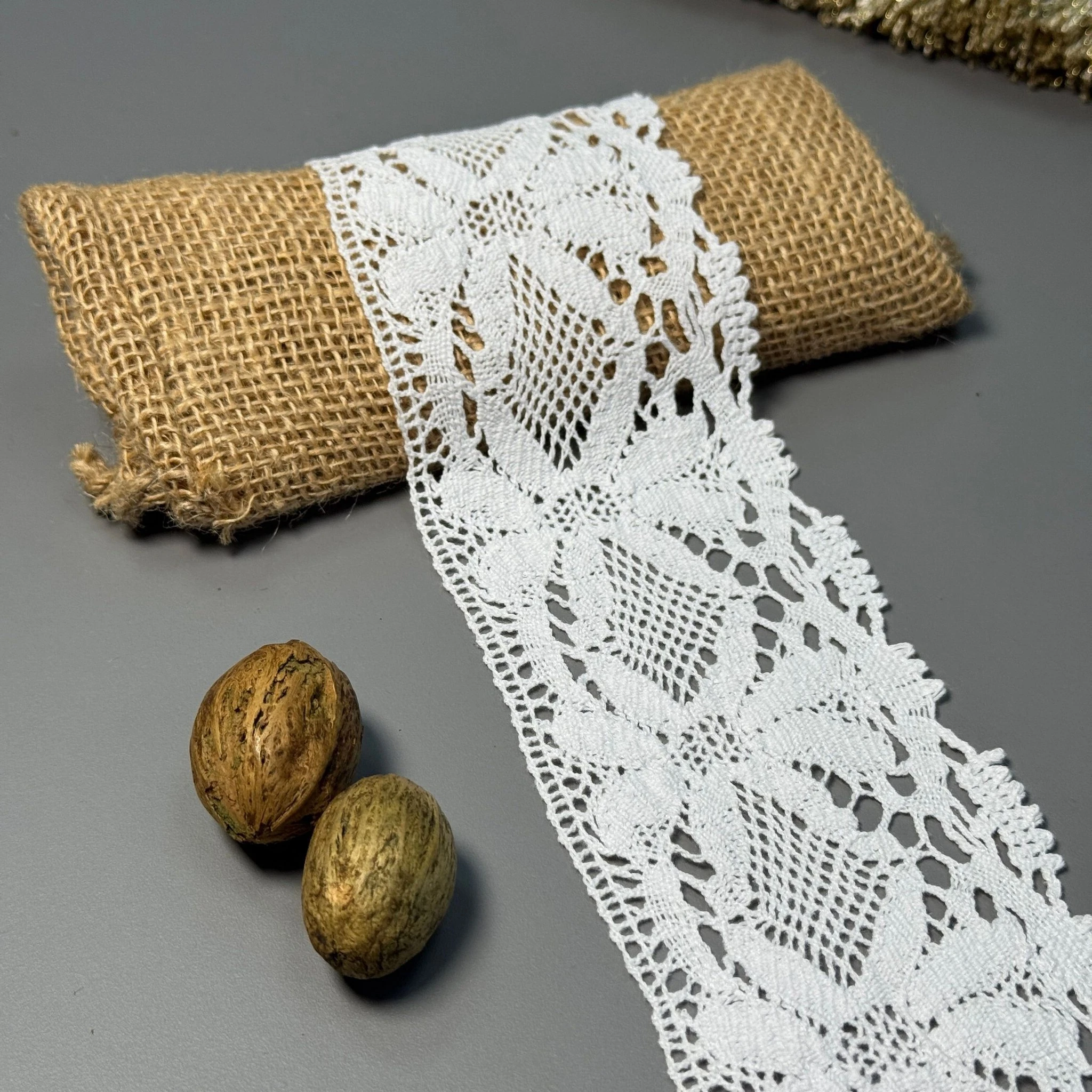 Плотное плетение и изящный узор делают это кружево идеальным для создания платьев, блузок, аксессуаров, декоративного текстиля и изделий handmade.