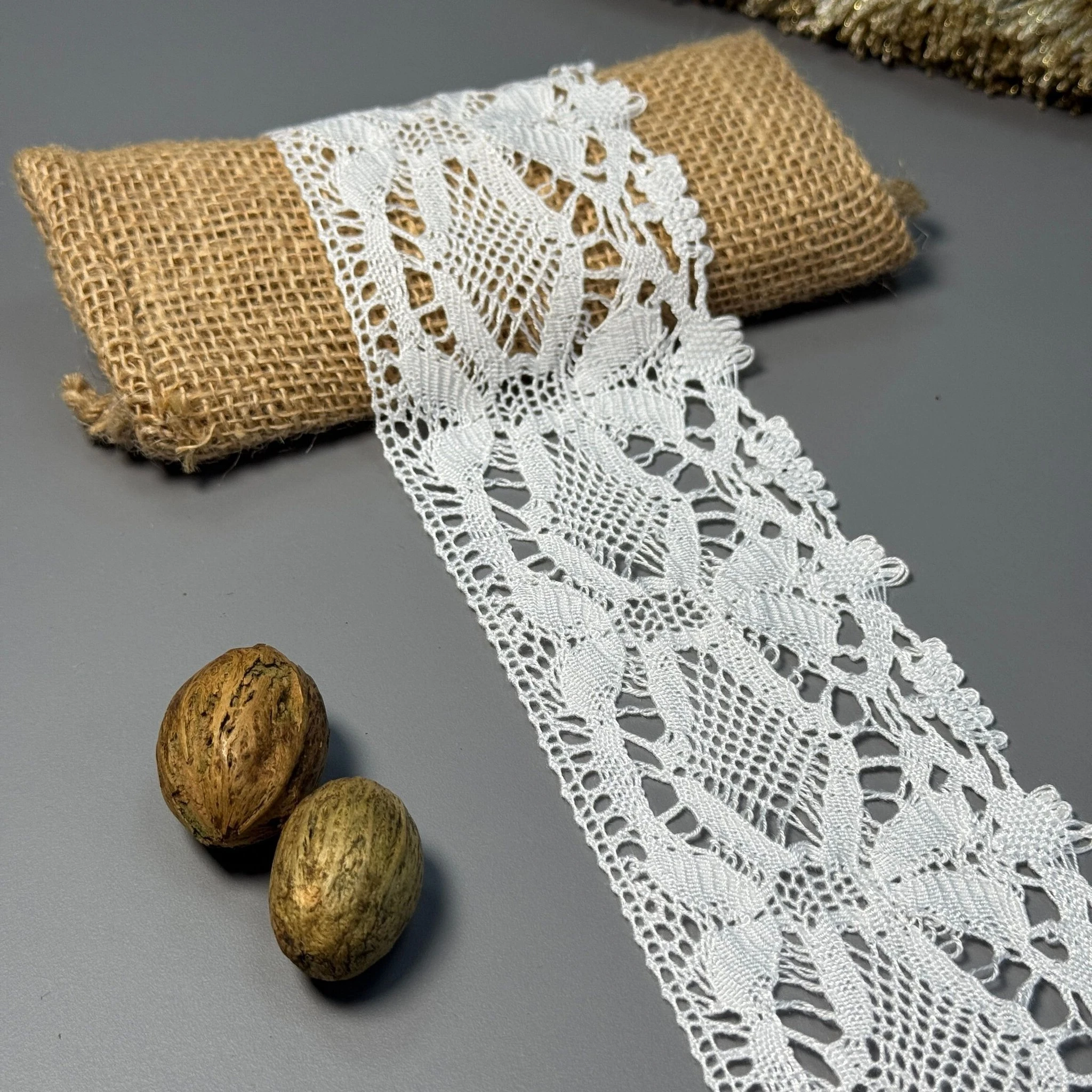 Плотное плетение и изящный узор делают это кружево идеальным для создания платьев, блузок, аксессуаров, декоративного текстиля и изделий handmade.