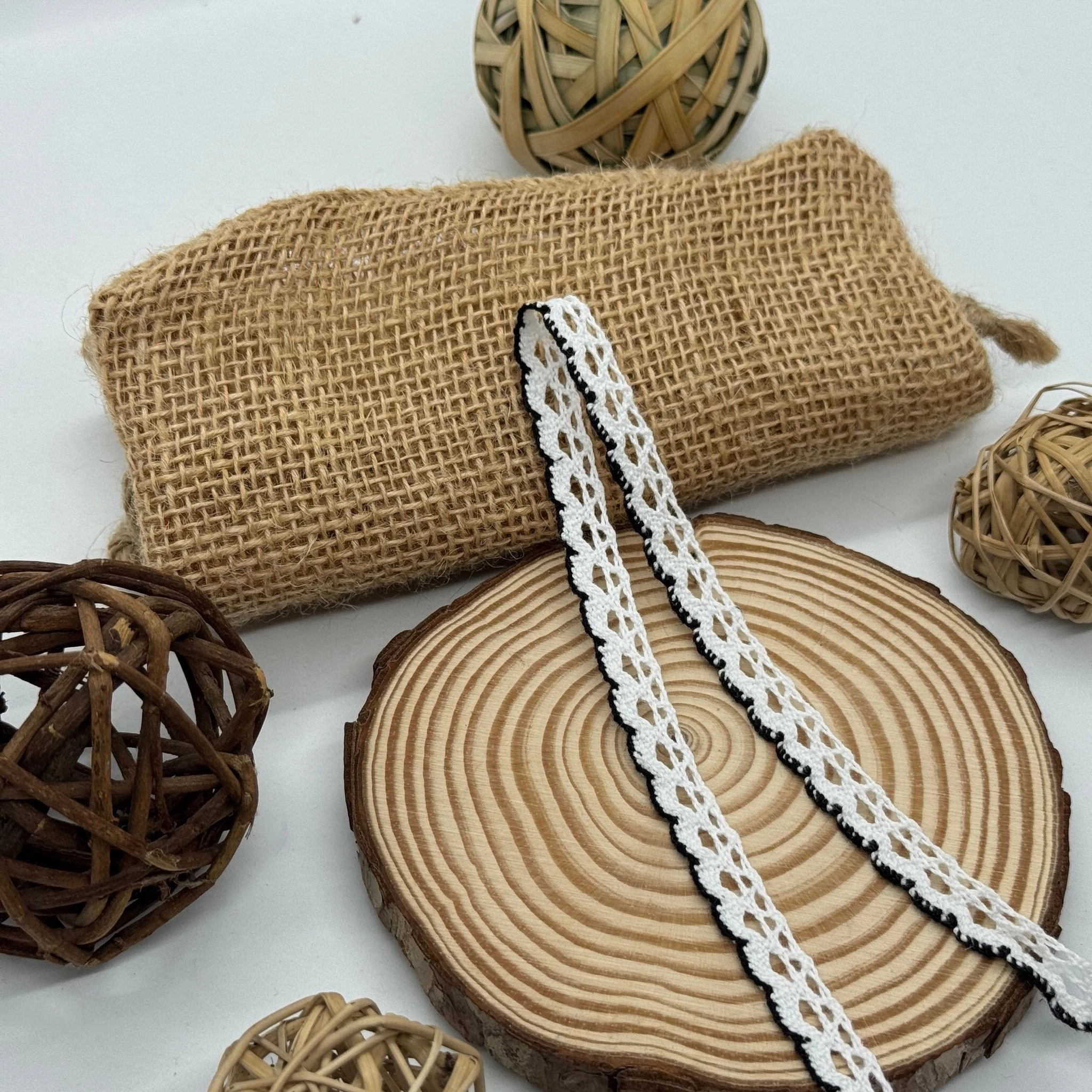 Кружево макраме "Белый мотылек" 1 см. (1 м.), чорний+білий