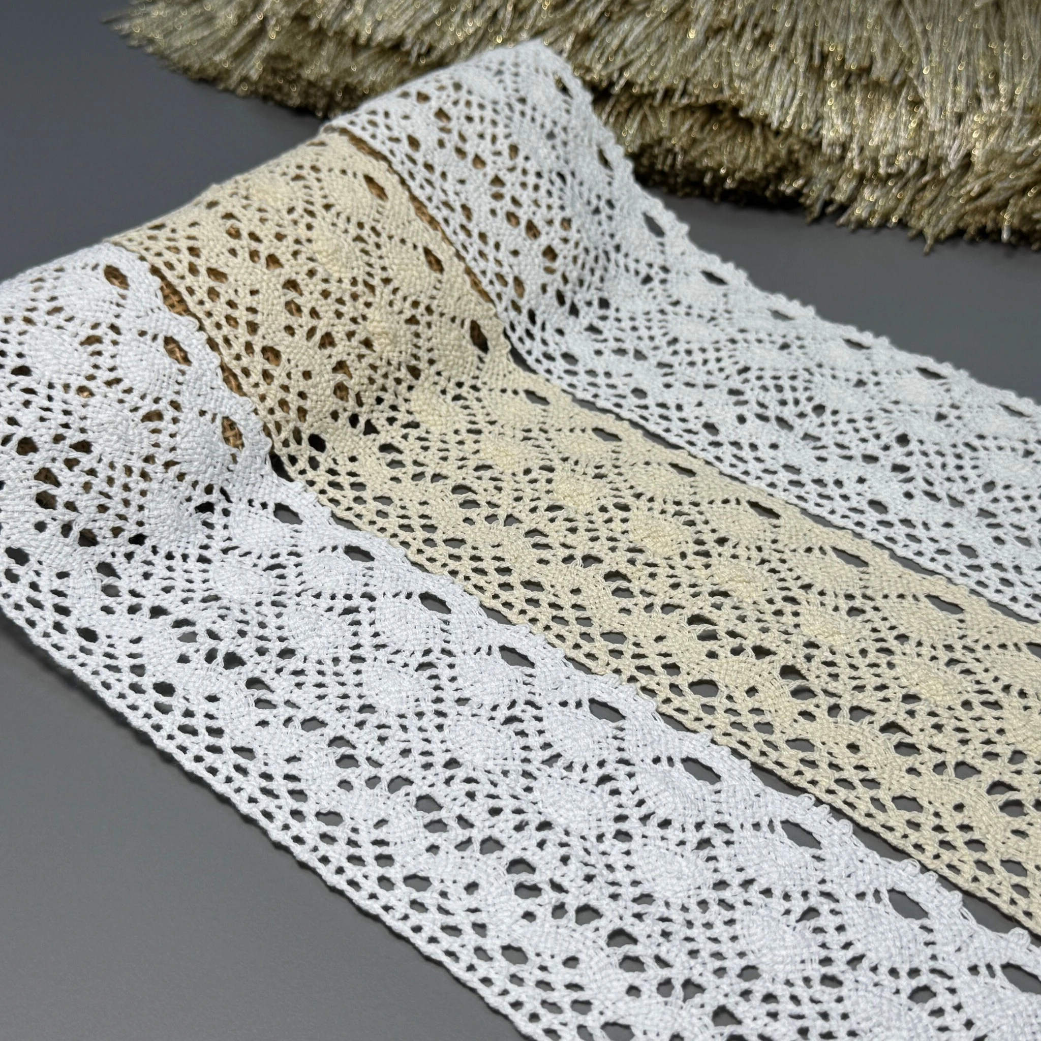 Плотное плетение и изысканный узор делают это кружево идеальным для создания платьев, блузок, аксессуаров, декоративного текстиля и изделий handmade.