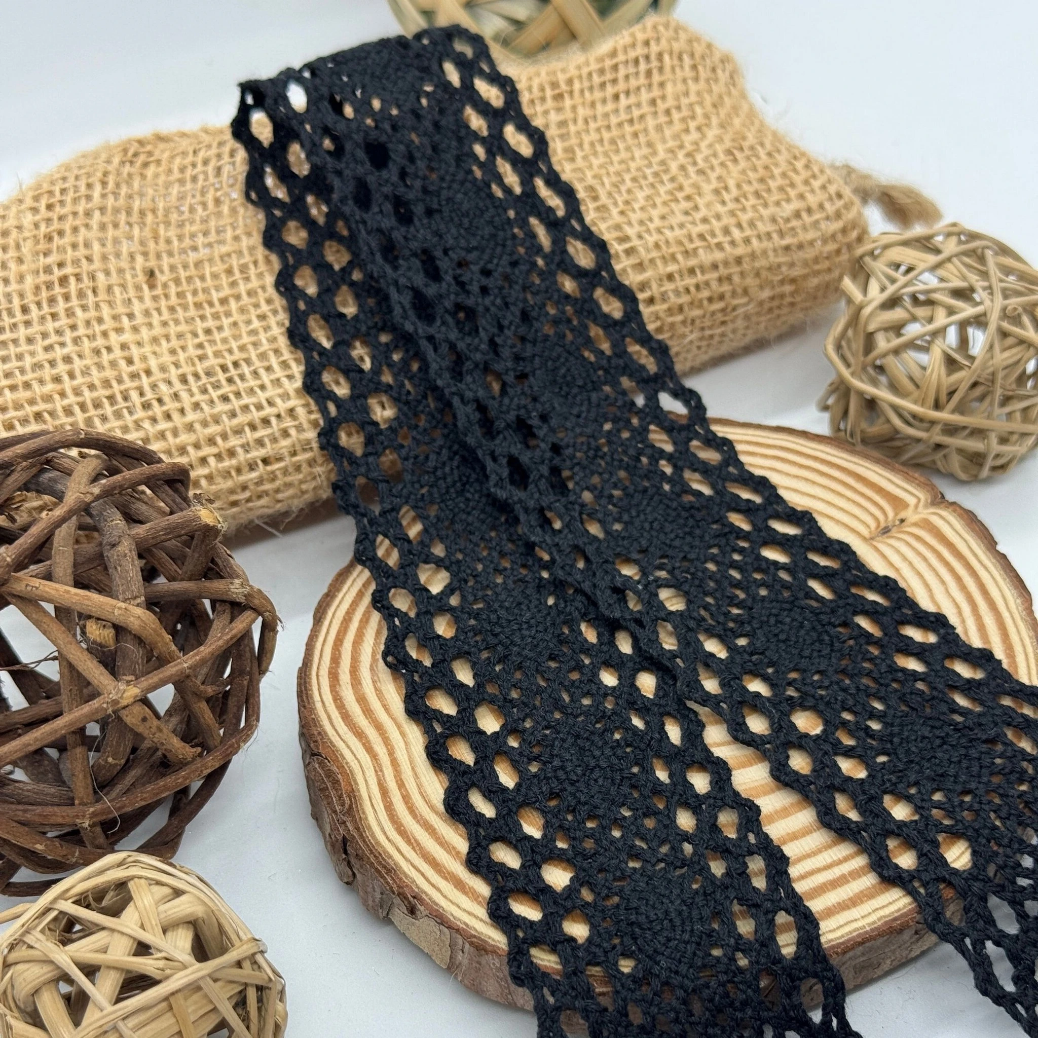 Кружевное макраме "Теплый крем" 4 см (1 м.), чорний