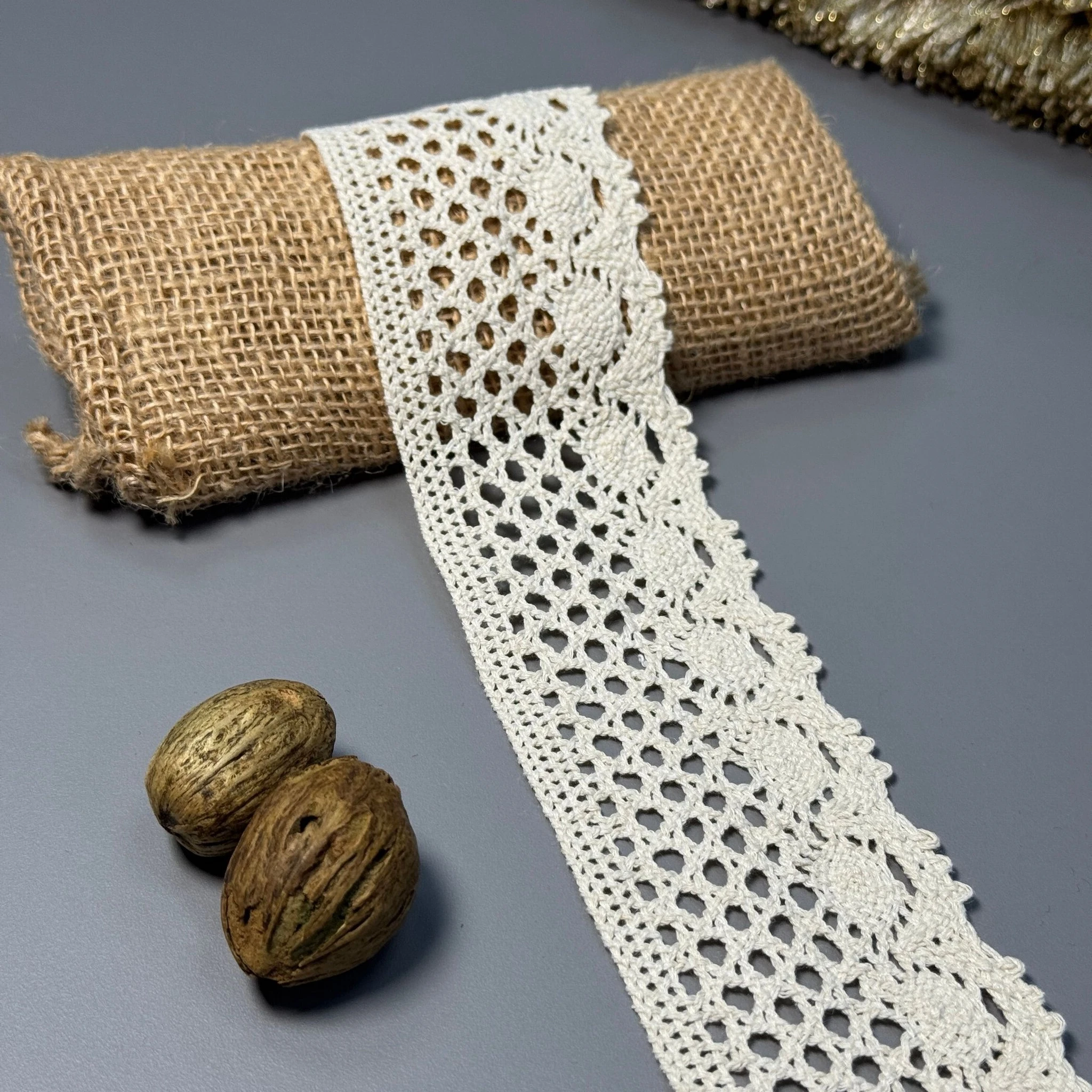 Кружево макраме "Линия спокойствия" 6 см (1 м.), бежевий