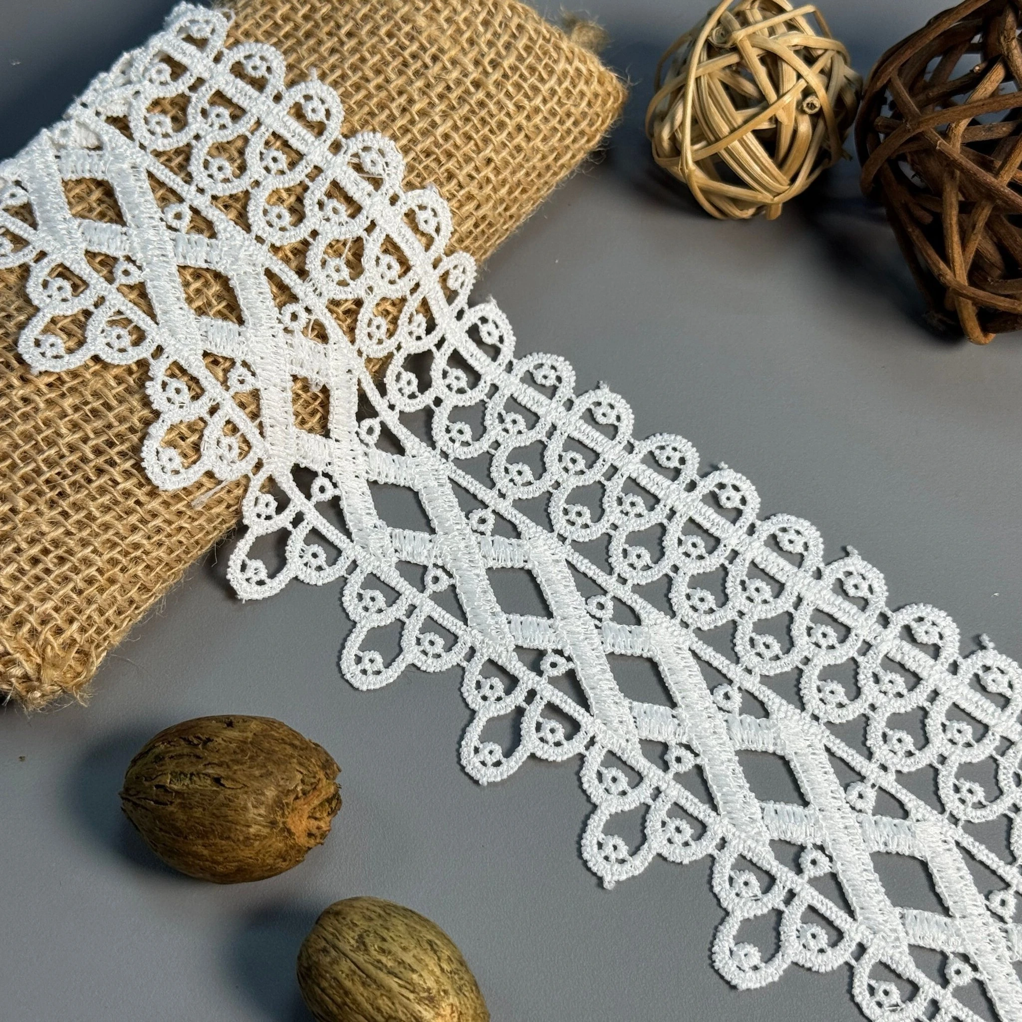 Плотное плетение и изящный узор делают это кружево идеальным для создания платьев, блузок, аксессуаров, декоративного текстиля и изделий handmade.