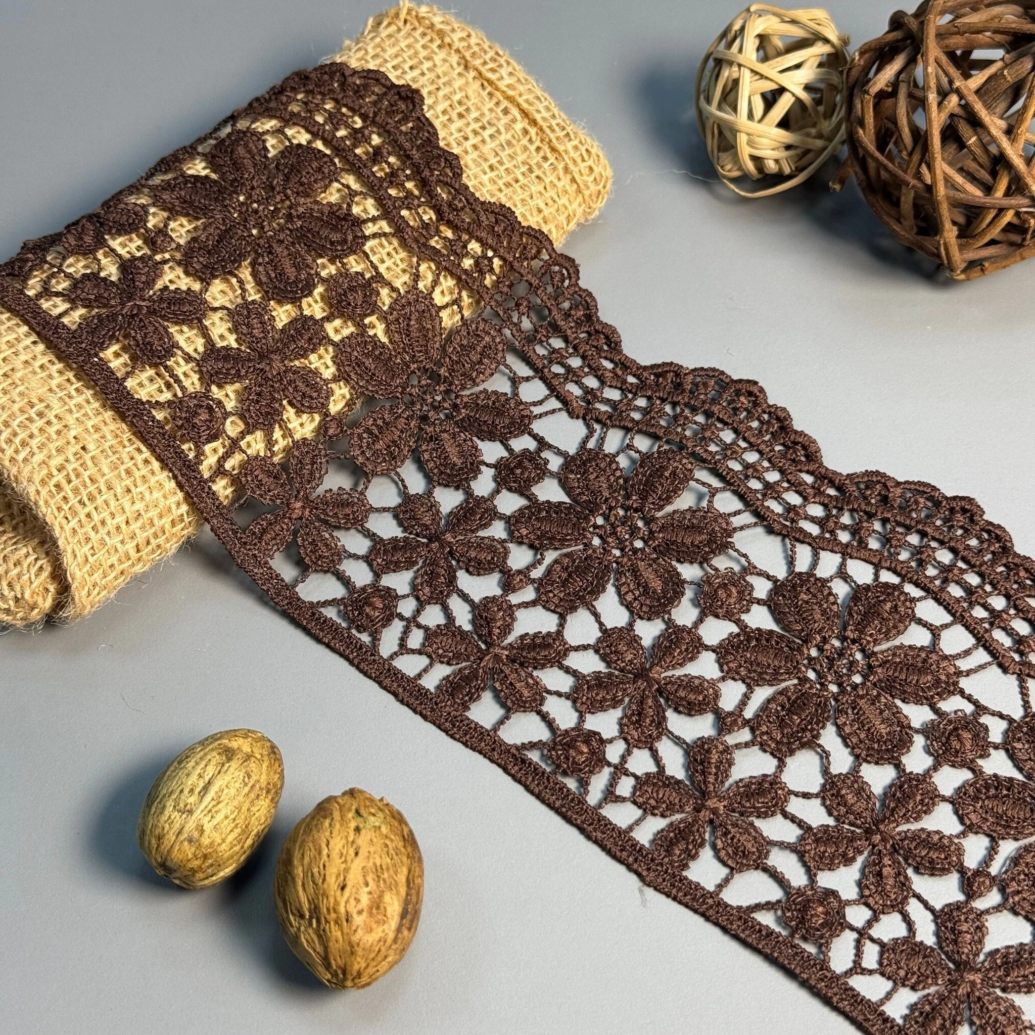 Кружево полиэстер "Цветочный рай" 10 см.(1 м.), коричневий (19.8 метрів)