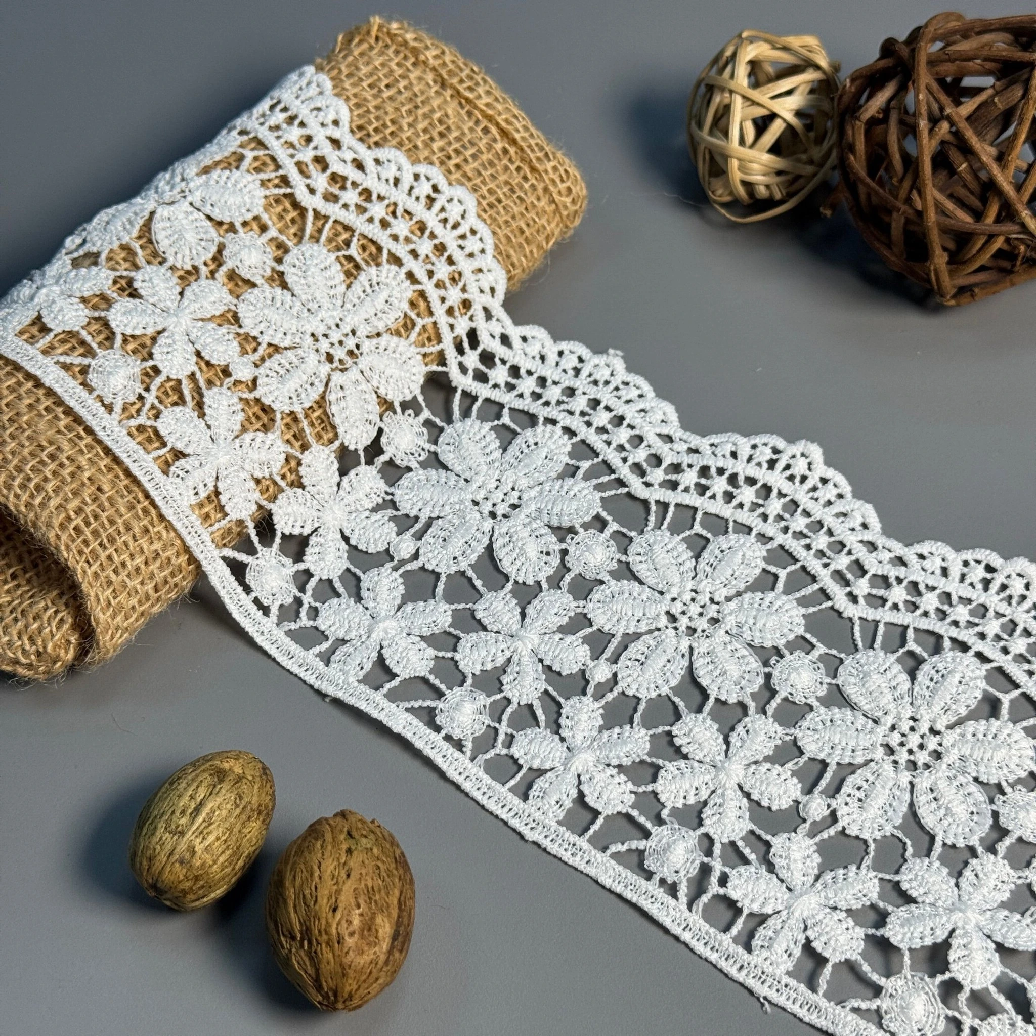 Кружево полиэстер — это красивый и практичный материал, который сочетает нежность кружевного плетения с прочностью синтетических волокон. Оно хорошо держит форму, не растягивается, не выцветает и сохраняет свой вид после многих стирок.